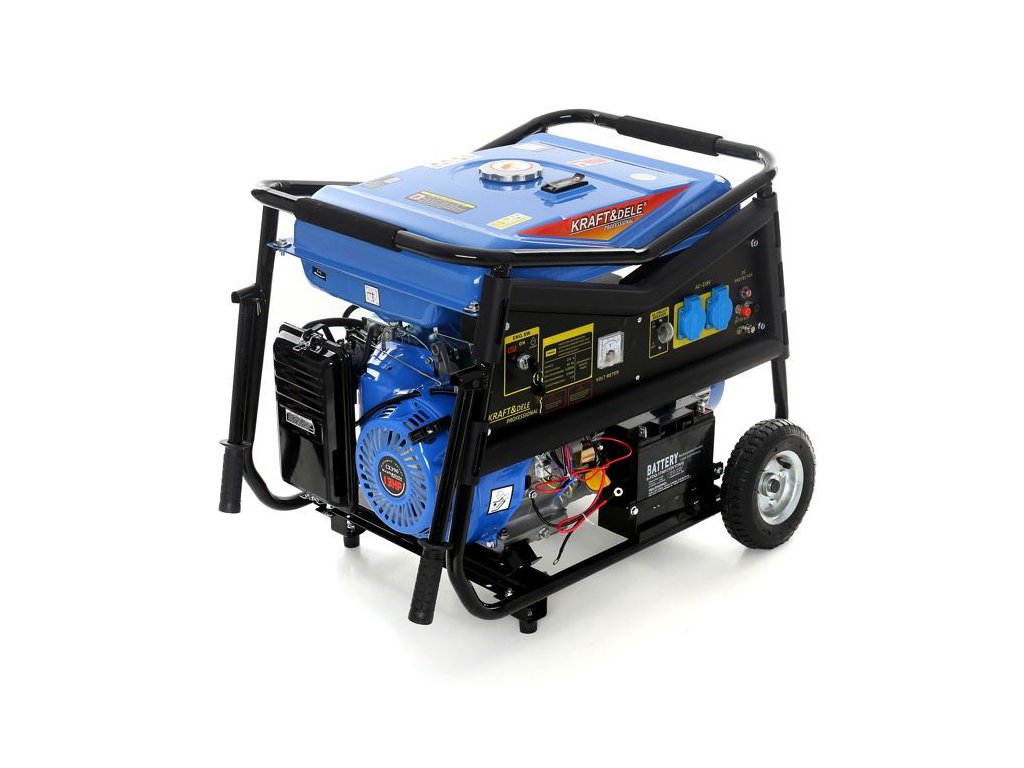 Prenosný jednofázový elektrický generátor označený ako KD145 značky Kraft&Dele je určený na výrobu striedavého prúdu 220V-230V pomocou zážihového motora japonskej konštrukcie OHV 4-taktného o výkone 7HP a maximálnym výkonom generátora 5000W.