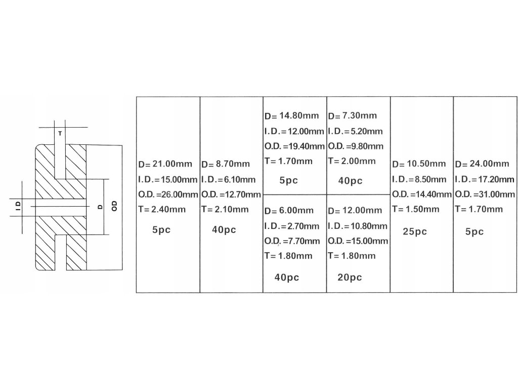 Sada obojích gumových priechodiek je zabalená v praktickej pohodlnej krabici, ktorá umožňuje usporiadanie priechodiek podľa ich veľkostí. Úplný zoznam veľkostí tesnení obsiahnutých v sade je uvedený na obale.