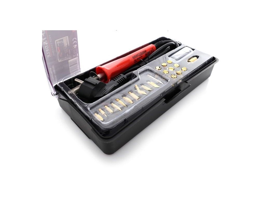 Pyrograf na vypaľovanie do dreva a kože KD10112 značky Kraft&Dele. Zariadenie slúži okrem iného na zdobenie predmetov z dreva, kože a korku pomocou priložených hrotov. Zariadenie dosahuje teploty až 275 °C, čo robí vypaľovanie veľmi jednoduchým a rýchlym.