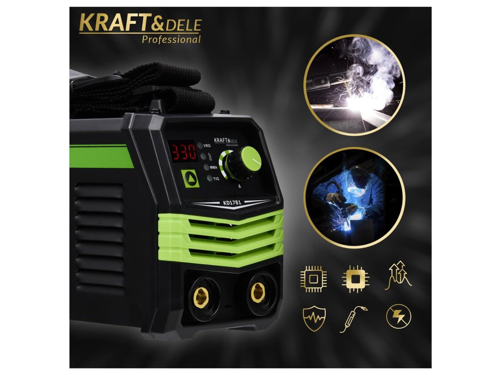 Moderná invertorová zváračka značky Kraft&Dele , model KD1781, je zariadenie určené na oblúkové zváranie obalenou elektródou. Zváranie obalenými elektródami je metóda oblúkového zvárania pomocou tavivej kovovej elektródy pokrytej obalom taviva.
