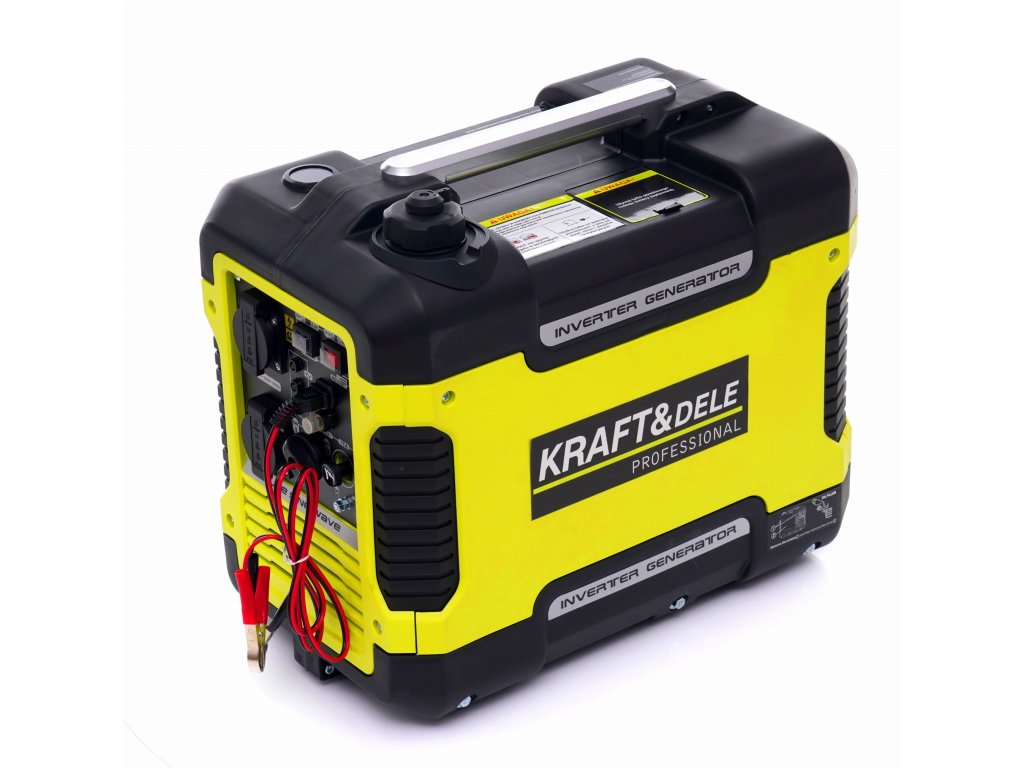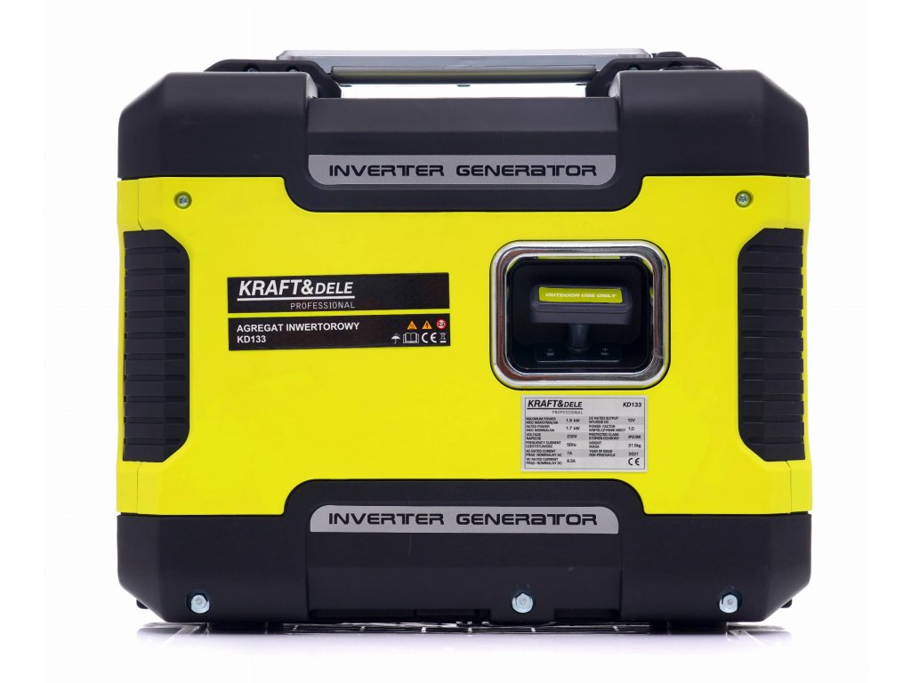Invertorový generátor 1,9 kW KD133 poľskej značky Kraft&Dele je vybavený ukazovateľmi: napätia, preťaženia a hladiny oleja pre zvýšenie komfortu používania.