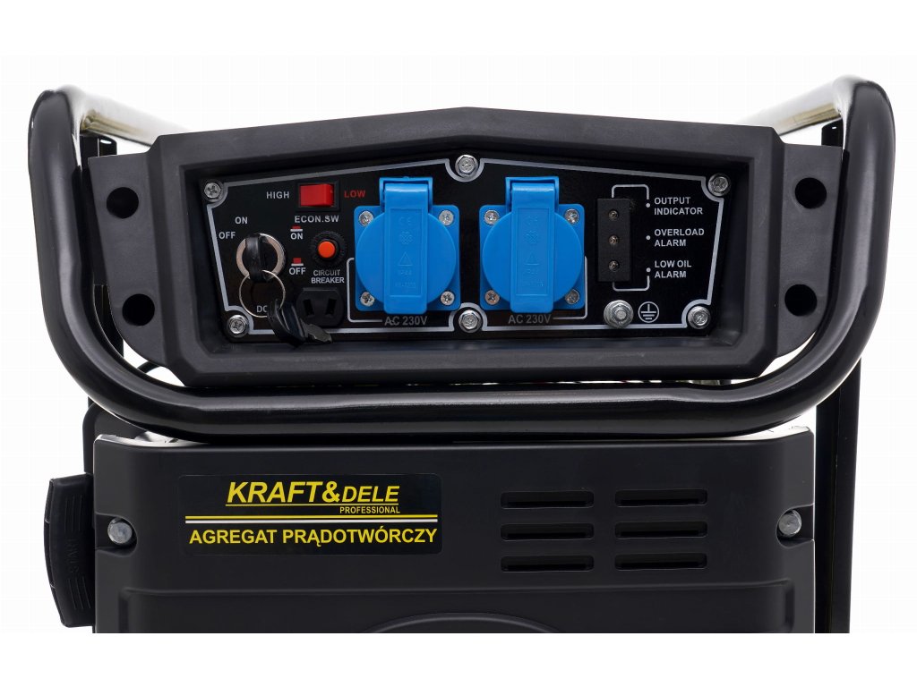 Invertorový agregát poľskej značky Kraft&Dele modelu KD194 je vybavený ukazovateľmi napätia, preťaženia a úrovne oleja pre zvýšenie komfortu používania.