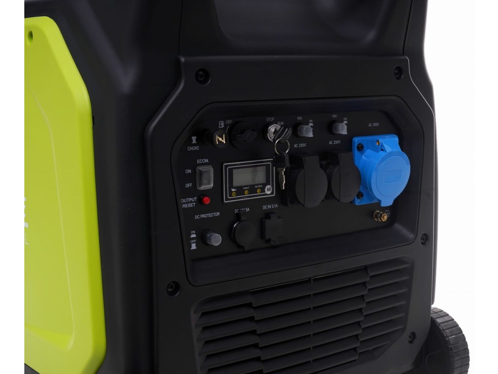 Špecifikácia: • Výkon motora: 7,0 kW (maximálny výkon: 7,6 kW) • Palivo: bezolovnatý benzín 95 alebo 98 • Kapacita palivovej nádrže: 18,5 l • Hmotnosť: 89 kg • Napätie: 230 V • Frekvencia: 50 Hz • Napätie: 12 V • Striedavý prúd: 30,43 A • Prevádzka (na plnú nádrž): 4,3 h • Maximálna teplota: 40 °C • Hladina hluku: 95 dB • Motor: 4-taktný, vzduchom chladený • Technológia inteligentnej škrtacej klapky • Stabilizácia prúdu, napätia a frekvencie • Dva režimy prevádzky: S1 a S2 • Ochrana proti preťaženiu • Šetrný k životnému prostrediu |