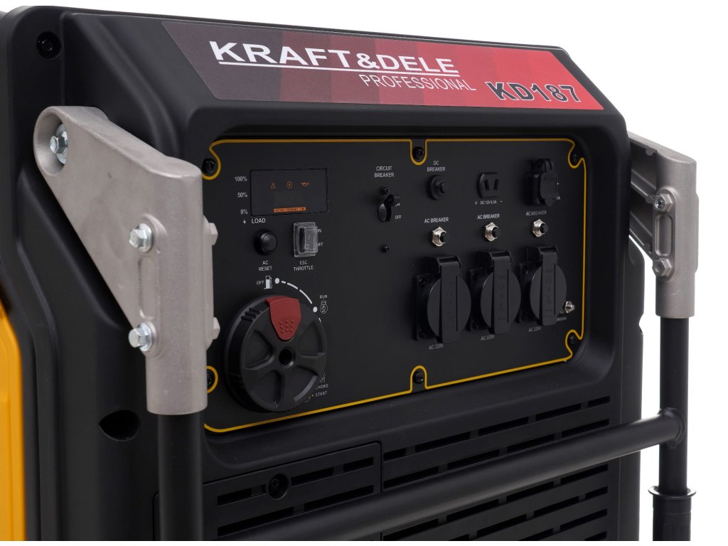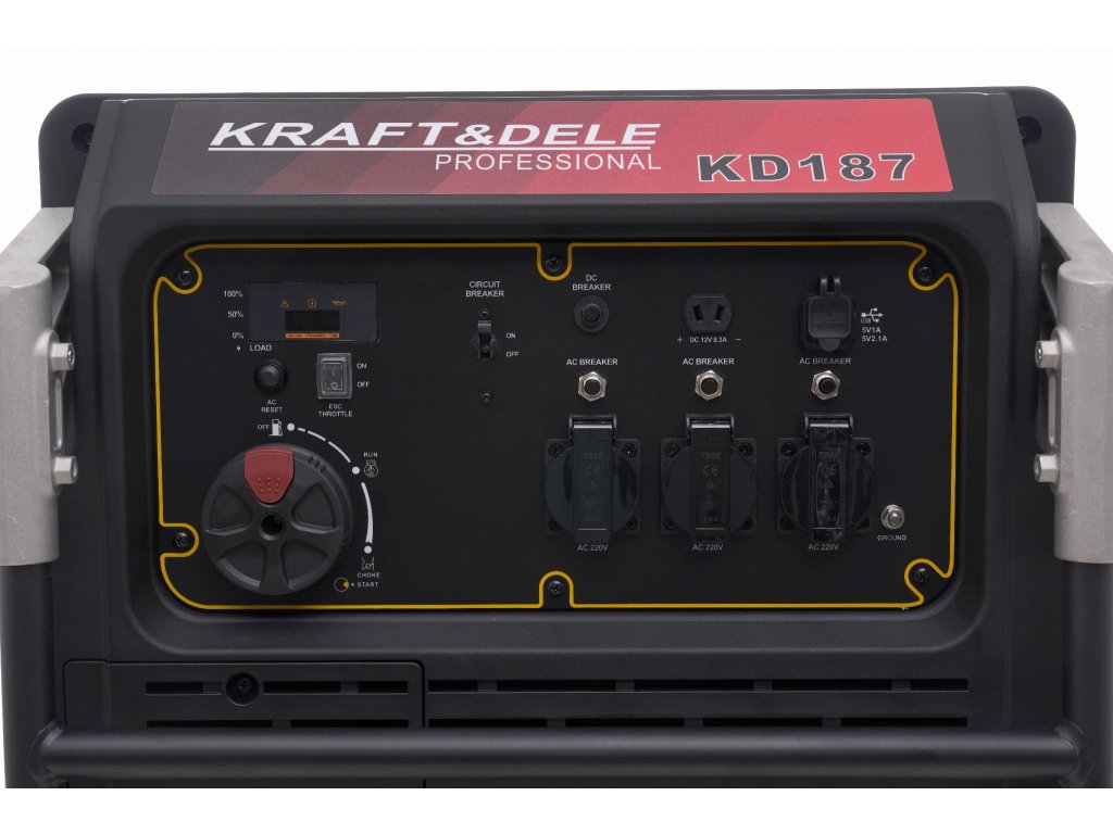 Invertorový generátor 8,5 kW KD187 značky KRAFT&DELE je vybavený ukazovateľmi napätia, preťaženia a hladiny oleja pre zvýšenie komfortu používania.