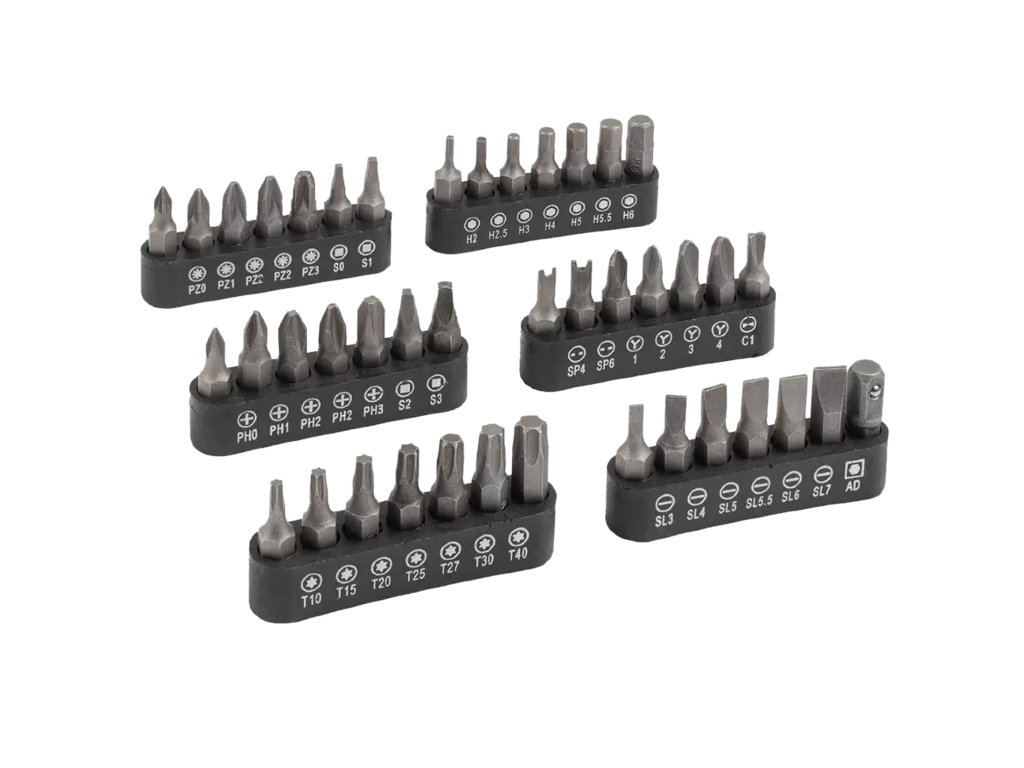 - 1 ks magnetický držiak bitov 1/4" — rýchla výmena nástavcov, pohodlie pri práci