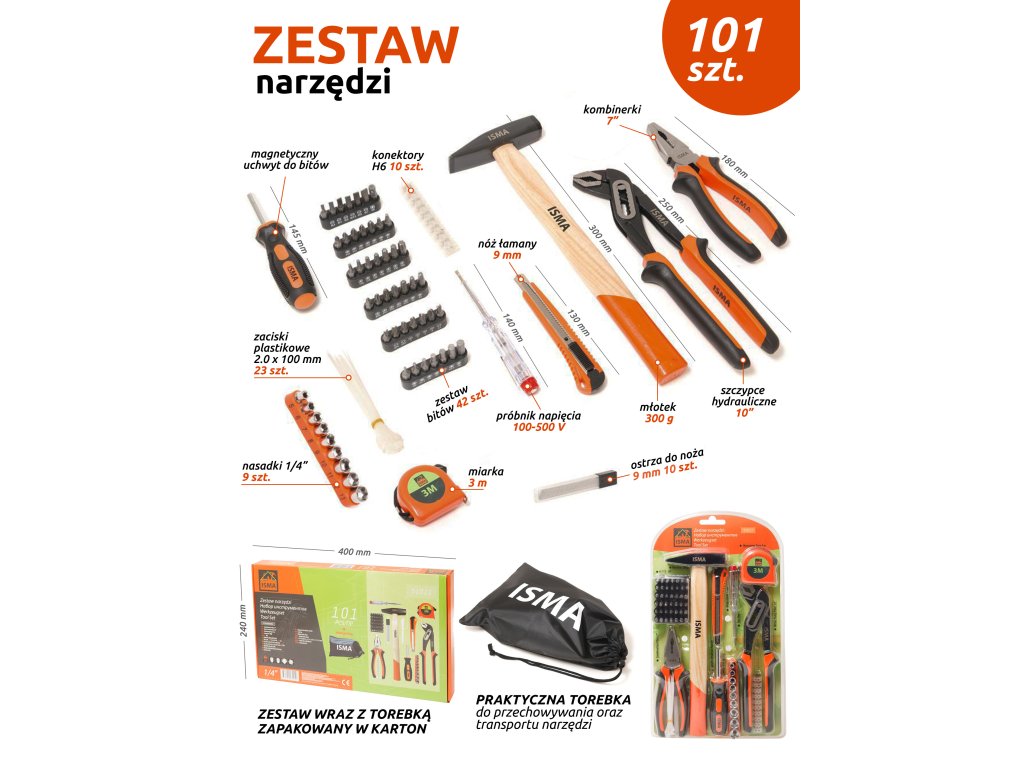 ISMA Veľká sada náradia 101 dielov, kľúče, skrutkovače, bity + taška na náradie