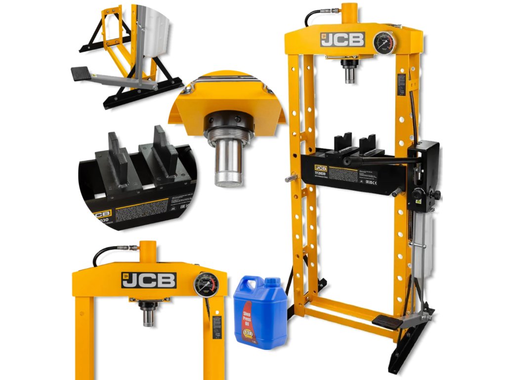Profesionálny 20t hydraulický lis JCB-TY20030 je kombináciou vynikajúcej sily, stability a ergonómie v jednom zariadení. Je navrhnutý pre najnáročnejšie dielenské a priemyselné práce, ako sú lisovanie, ohýbanie , rovnanie, vtláčanie a vytláčanie súčastí .