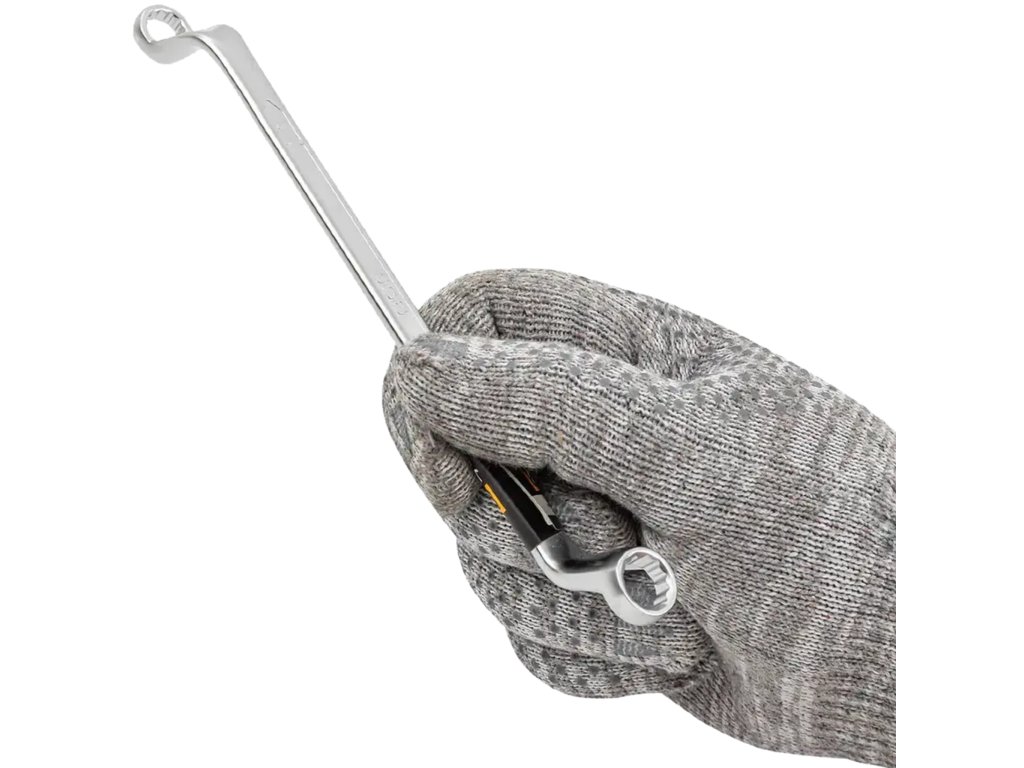 Oba konce kľúča ohnuté pod uhlom 75° umožňujú pohodlnú prácu na ťažko dostupných miestach – napr. pri motoroch, podvozkových dieloch alebo inštaláciách.
