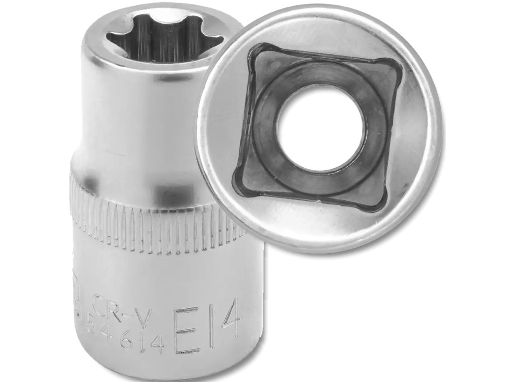 Hlavica s profilom E14, 1/2" je spoľahlivý a odolný nástroj určený pre prácu s upevňovacími prvkami s vonkajším profilom Torx. Vďaka presnému spracovaniu zaisťuje vynikajúcu priliehavosť k skrutkám a maticám, čím znižuje riziko preklzu a poškodenia drážky.