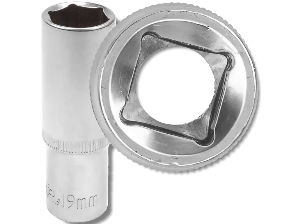 Hlboká nástrčná hlavica 1/2" 19 mm (6-hranná) je nenahraditeľný nástroj určený pre prácu s pevne usadenými maticami a skrutkami, najmä keď sú spojovacie prvky umiestnené v hlbokých sedlách alebo na dlhých čiapkach. hrán skrutiek.