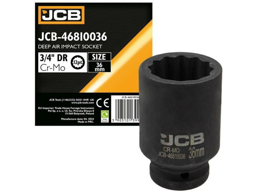 JCB Hlboká rázová hlavica 3/4", 36 mm, 12-hranná, Cr-Mo
