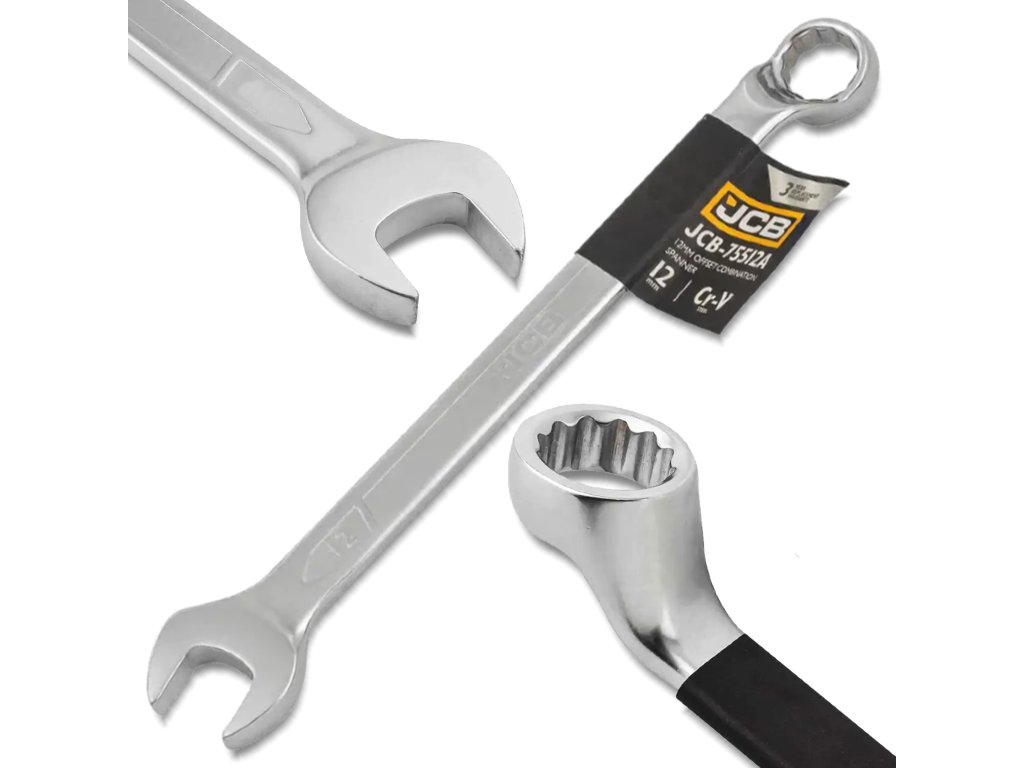 JCB Kombinovaný kľúč 12 mm, obojstranný, zahnutý 75 °, Cr-V, 12hranný