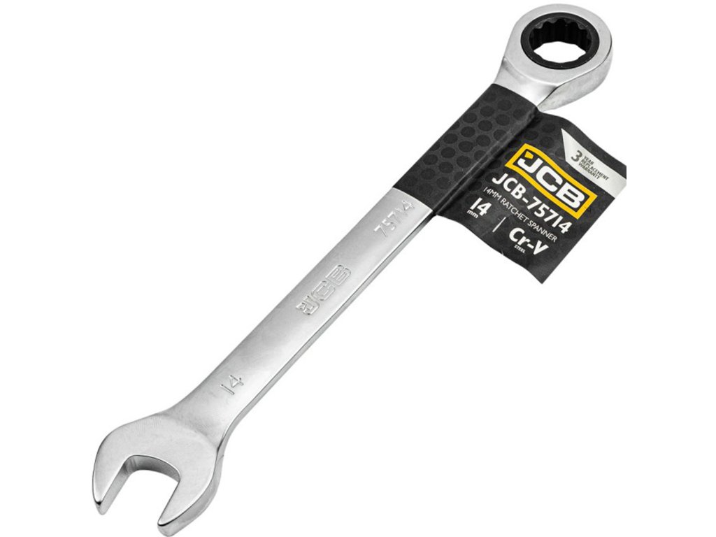 JCB Kombinovaný kľúč s reverznou račňou, 14 mm, Cr‑V, 12-hranný