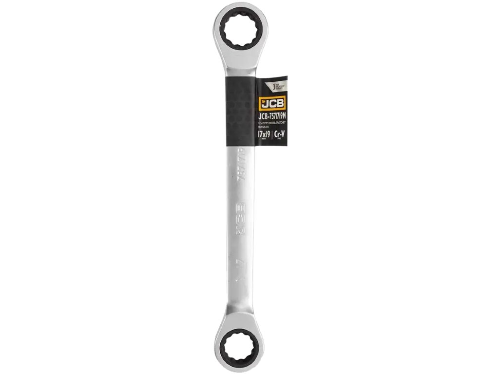 JCB obojstranný očkový kľúč s račňou 17 x 19 mm, Cr-V, 12hranný