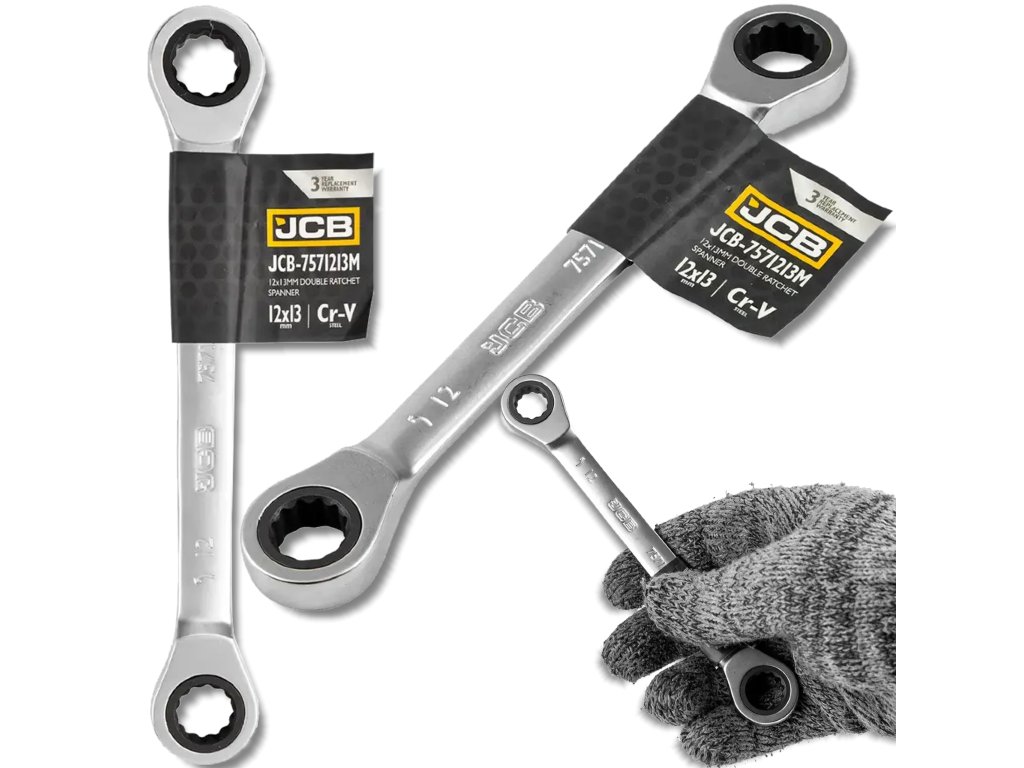 JCB Očkový kľúč obojstranný s račňou 12×13 mm, Cr-V, 12hranný
