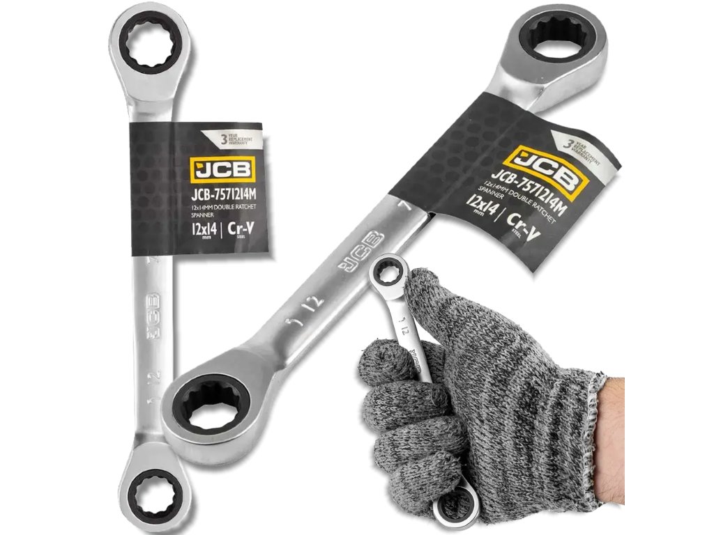 JCB Očkový kľúč obojstranný s račňou 12×14 mm, Cr‑V, 12hranný