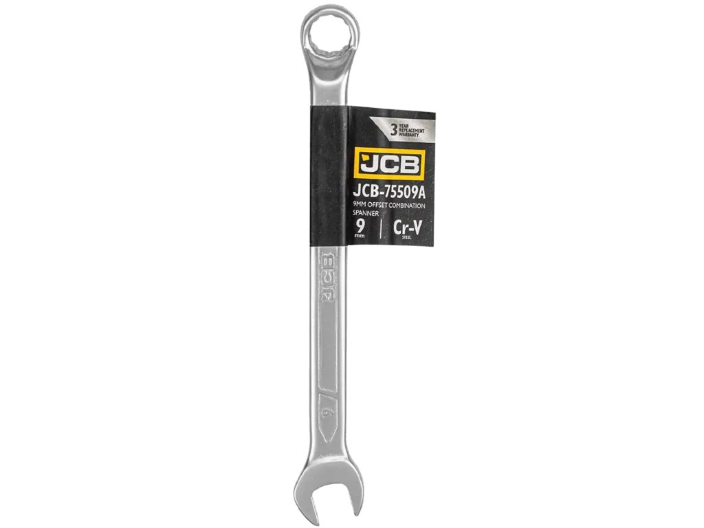 JCB plochý kombinovaný kľúč 9 mm, zahnutý o 75°, oceľ Cr-V, obojstranný