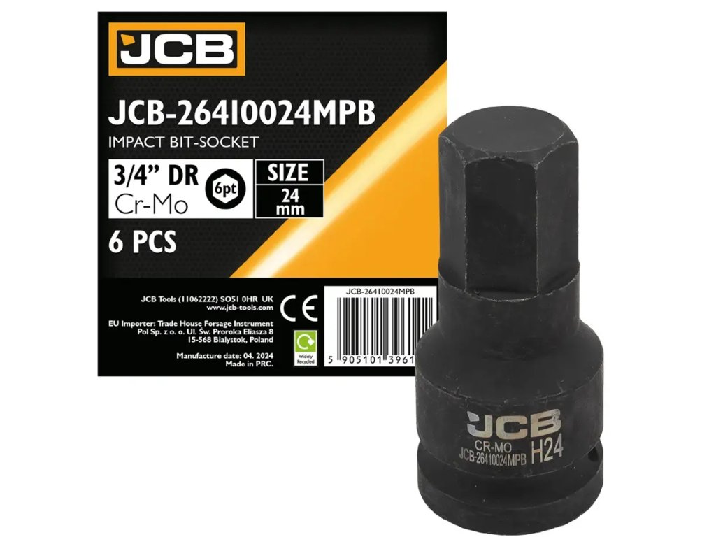 JCB rázová hlavica 3/4" 24 mm, 6-hranná, Cr-Mo