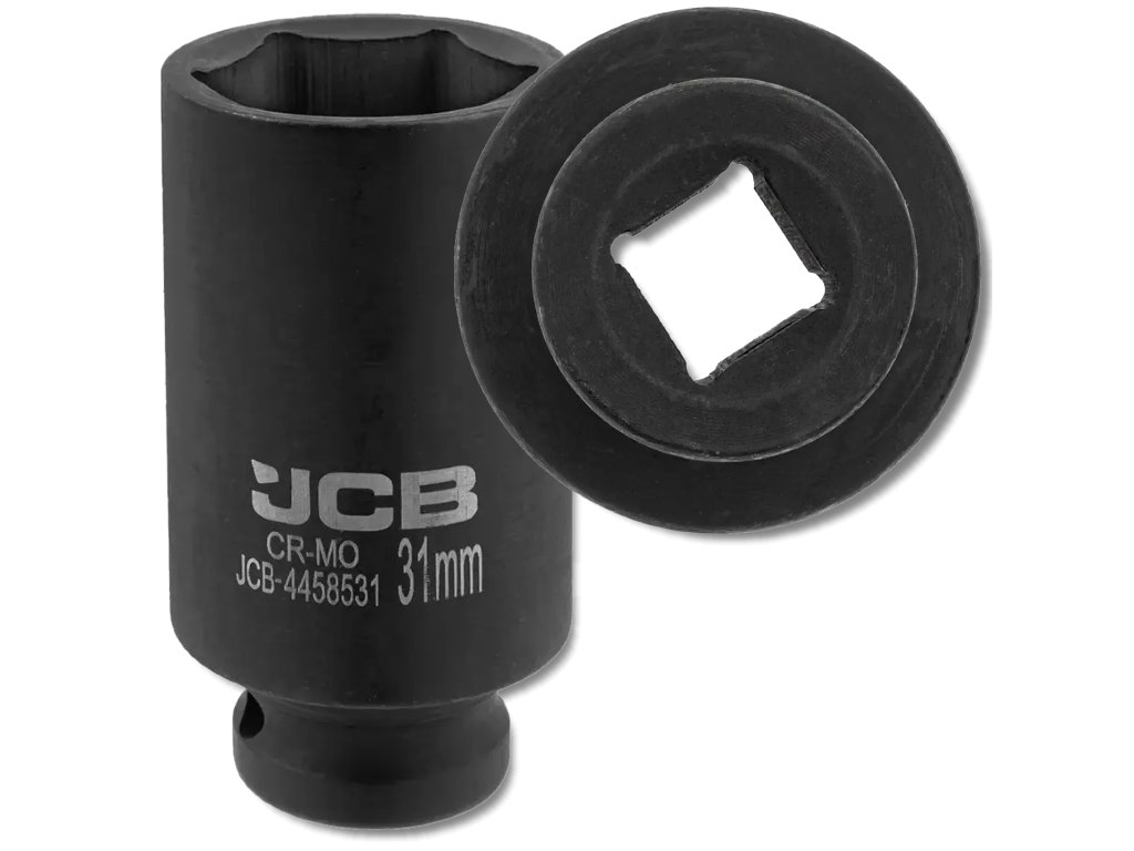JCB Rázová hlavica hlboká 1/2" 31 mm, 6-hranná, Cr-Mo