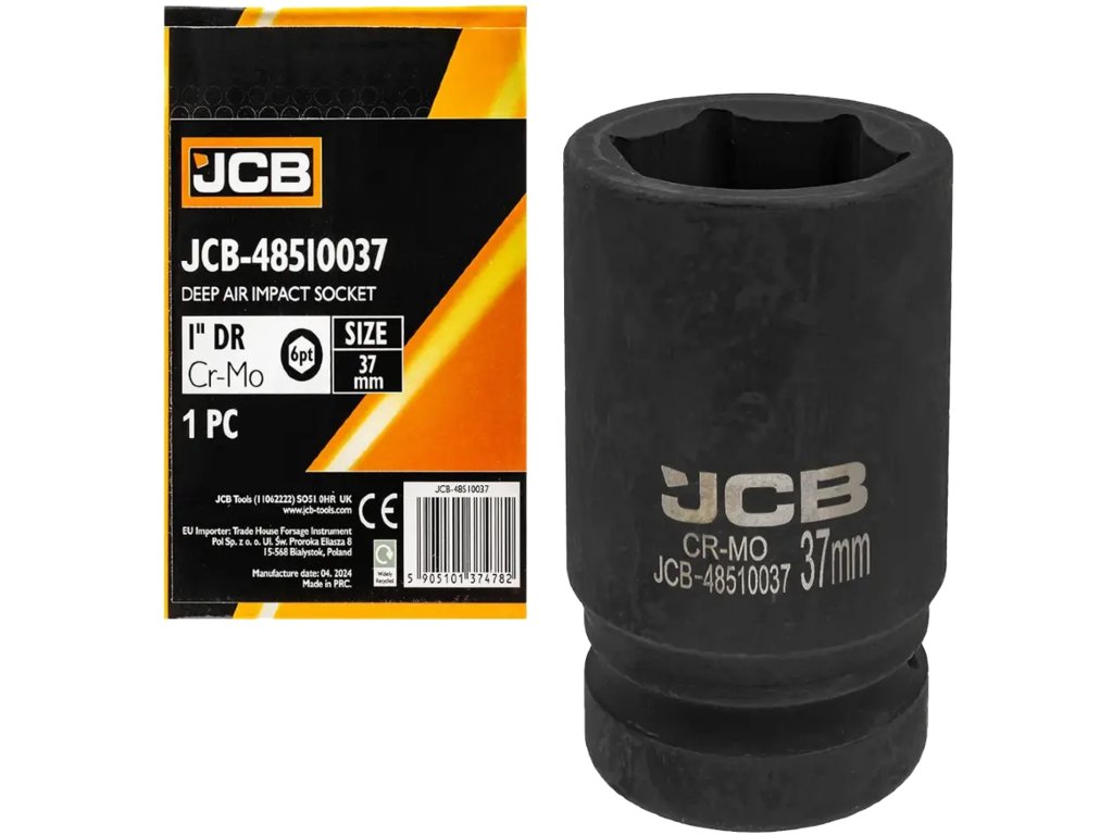 JCB rázová hlboká hlavica 1", 37 mm, 6-hranná, Cr-Mo