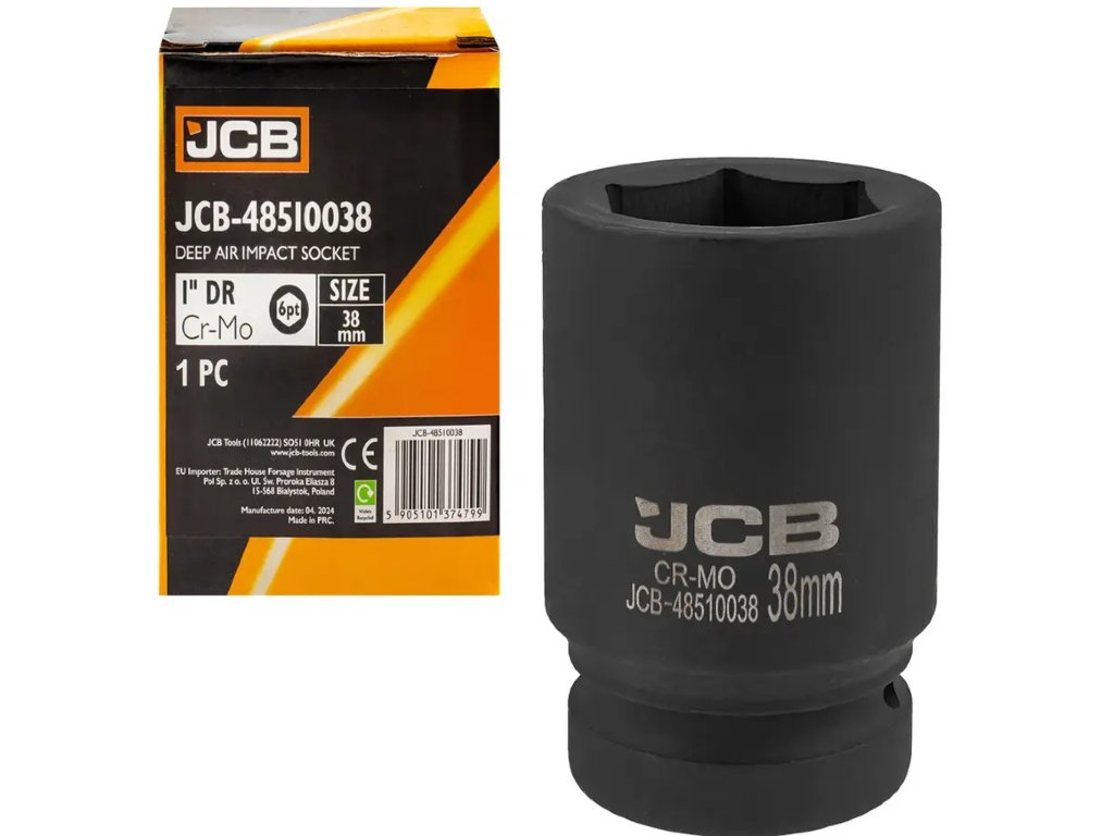 JCB rázová hlboká hlavica 1", 38 mm, 6-hranná, Cr-Mo