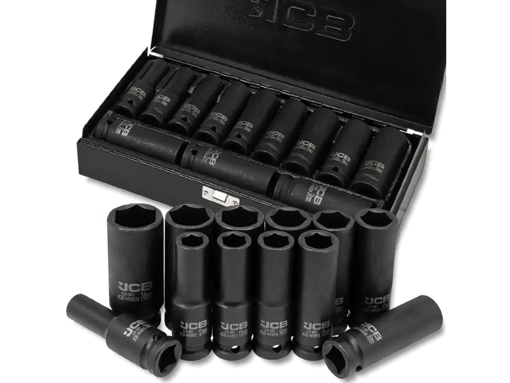 JCB sada hlbokých rázových hlavíc 1/2" 6hranné, Cr-Mo, 12 dielov