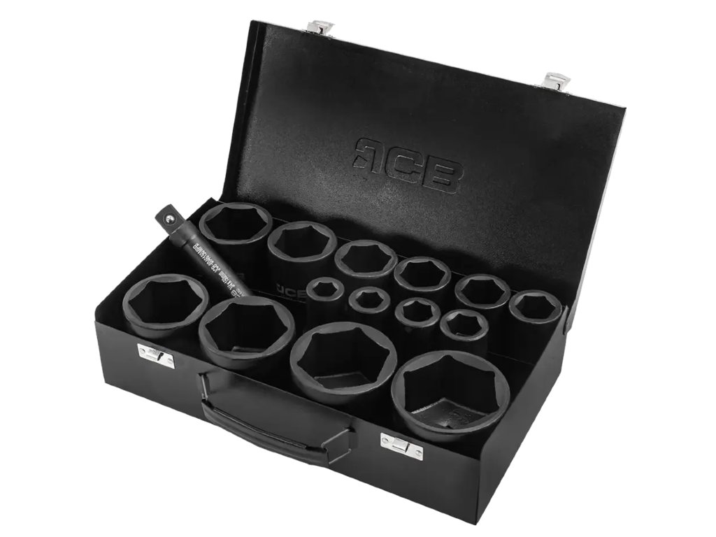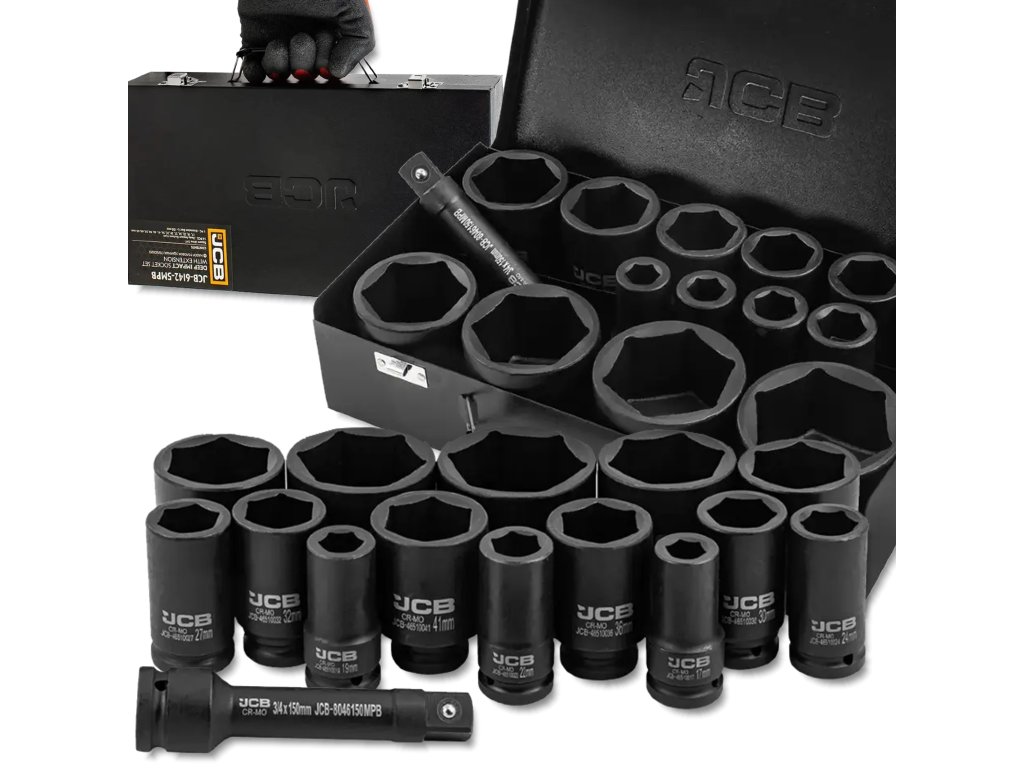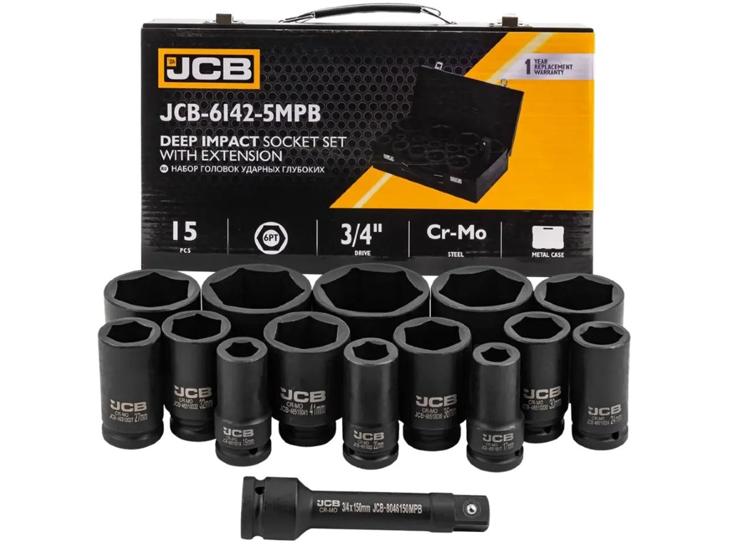 JCB sada hlbokých rázových hlavíc 3/4", 6hranné, Cr-Mo, 14 dielov