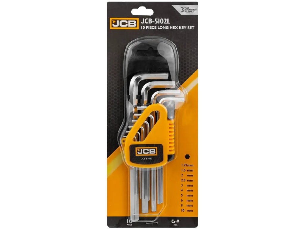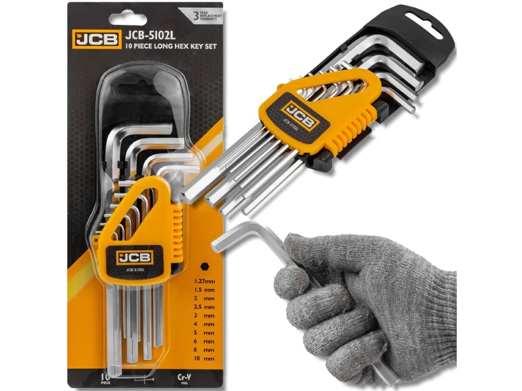JCB sada predĺžených imbusových kľúčov typu L, 10 ks, 1,27–10 mm, Cr‑V