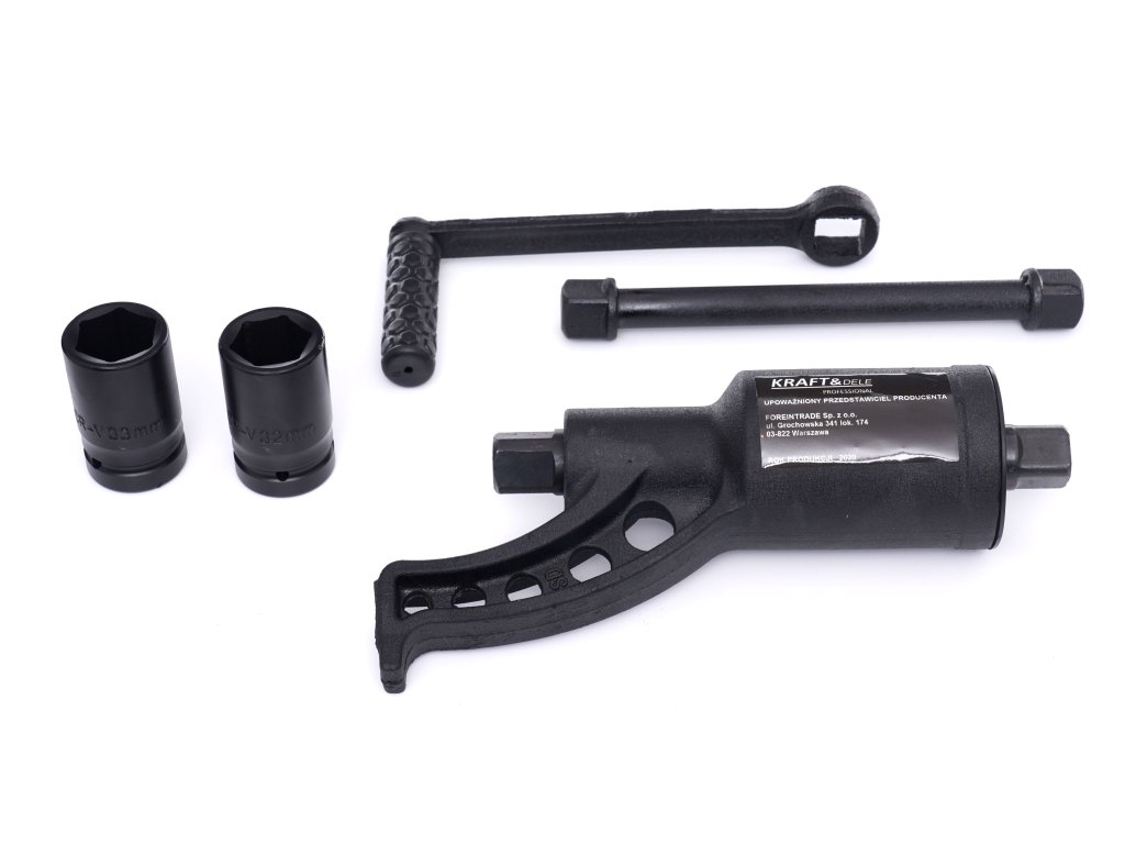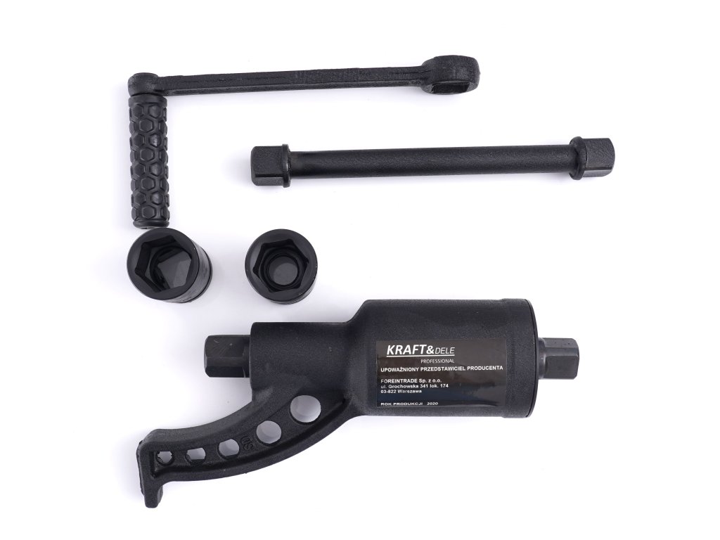 Tento plne profesionálny a spoľahlivý nástroj je nevyhnutný tam, kde sú skrutky extrémne zaťažené. Otočenie, ktoré doteraz vyžadovalo neprenosné vzduchové kľúče alebo neohrabané predlženia, je s týmto kľúčom vďaka jeho kompaktným rozmerom a jednoduchej manipulácii oveľa efektívnejšie. Stáva sa neoceniteľnou výbavou pre všetky nákladné automobily, TIR-y a rôzne druhy poľnohospodárskych alebo stavebných strojov. Vďaka premyslenej konštrukcii kľúča je možné tento kľúč prakticky prispôsobiť všetkým bežne používaným kolesám týchto vozidiel a mnohým ďalším.