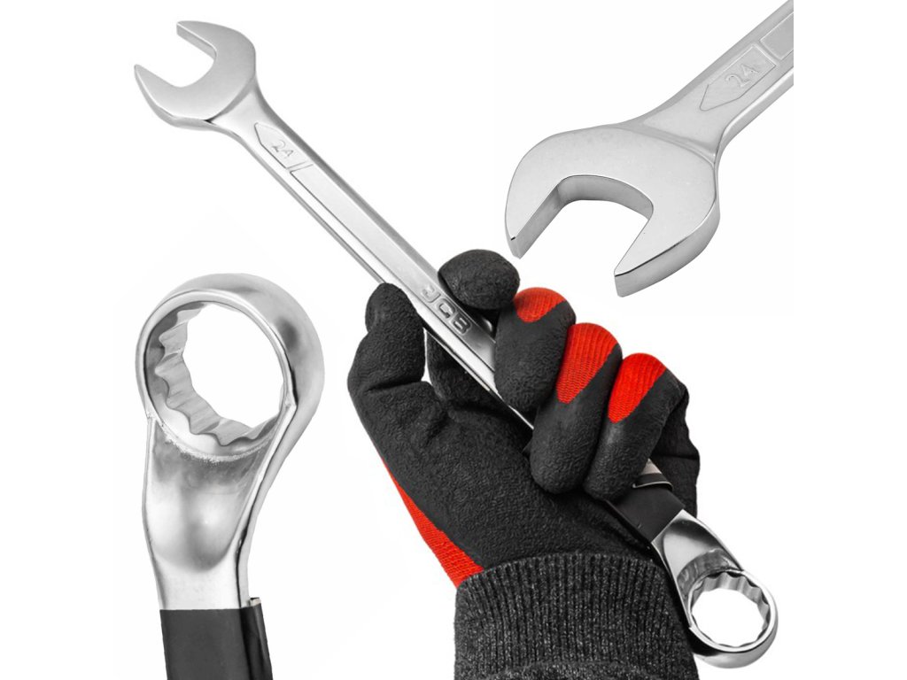 Kombinovaný kľúč 24 mm, zahnutý 75 °, Cr-V, JCB