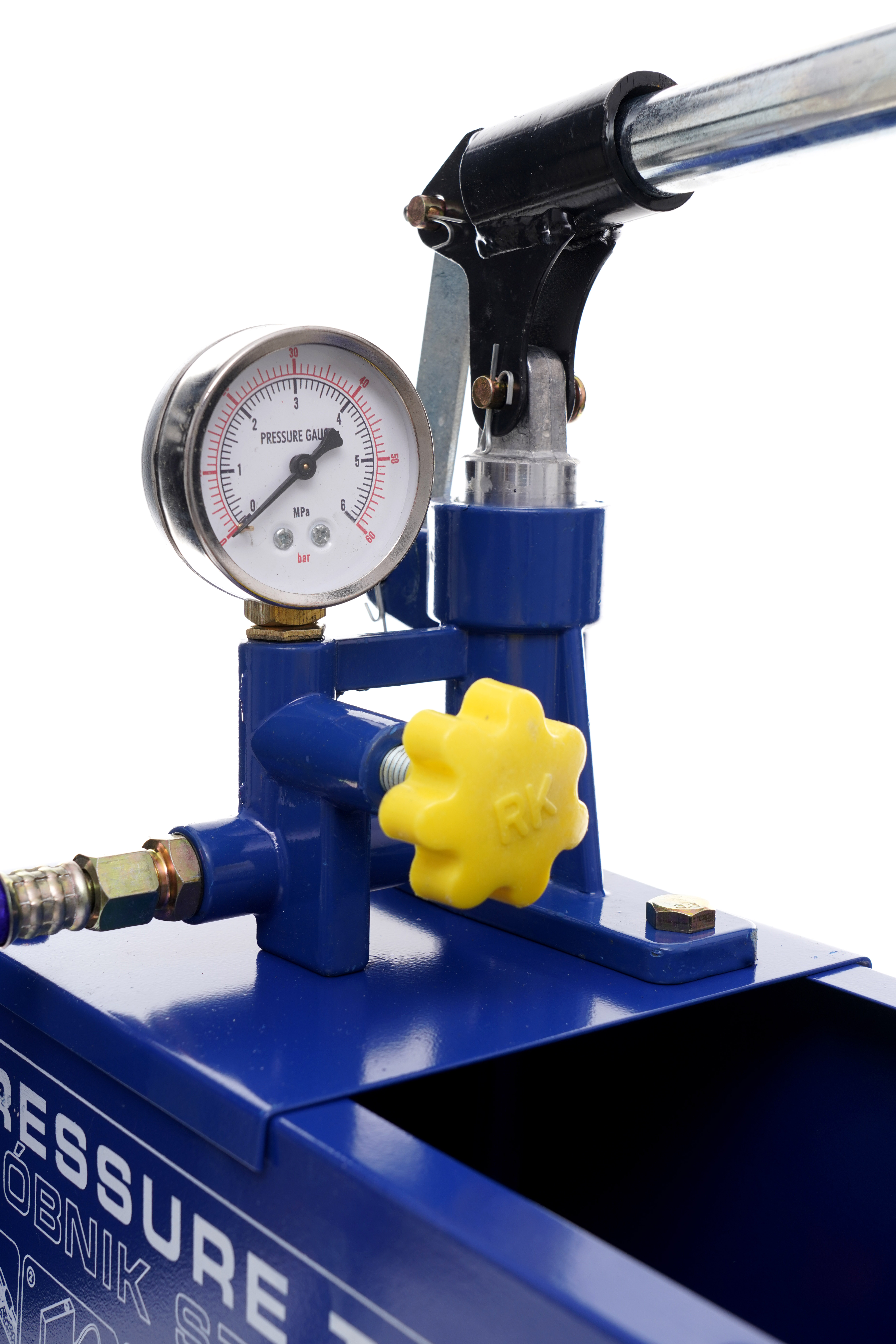 Testovacie tlakové čerpadlo značky Kraft&Dele, model KD10479, je presný nástroj používaný na vykonávanie tlakových skúšok a testov tesnosti v inštaláciách sanitárnych zariadení s využitím vody alebo oleja ako skúšobnej kvapaliny pri maximálnom skúšobnom tlaku 50 bar.