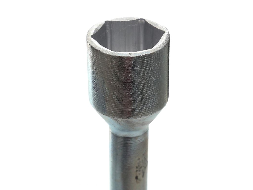 Praktický kľúč na disky automobilov. Vyrobený podľa normy DIN899. Obsahuje 4 ramená so šesťhrannými nadstavcami o veľkostiach 17mm, 19mm, 21mm a 23mm.