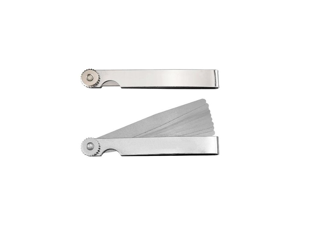 Plochý merač škár - 32 listov KD10561 značky Kraft&Dele je vyrobený z vysoko kvalitnej nerezovej ocele. Rozsah hrúbok listov začína na 0,03 mm a končí na 1,00 mm. Slúži na meranie veľkosti škár a medzier medzi súčiastkami. Najčastejšie sa používa na meranie vôlí pri nastavovaní ventilov a medzier pri zapaľovacích sviečkach spaľovacích motorov.