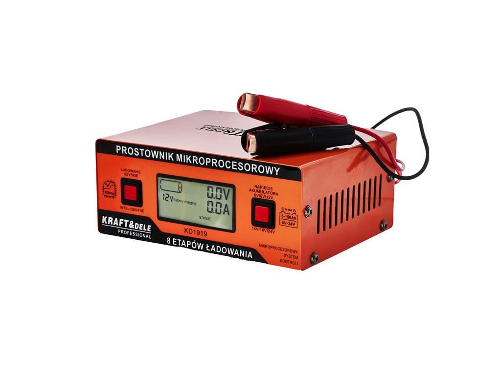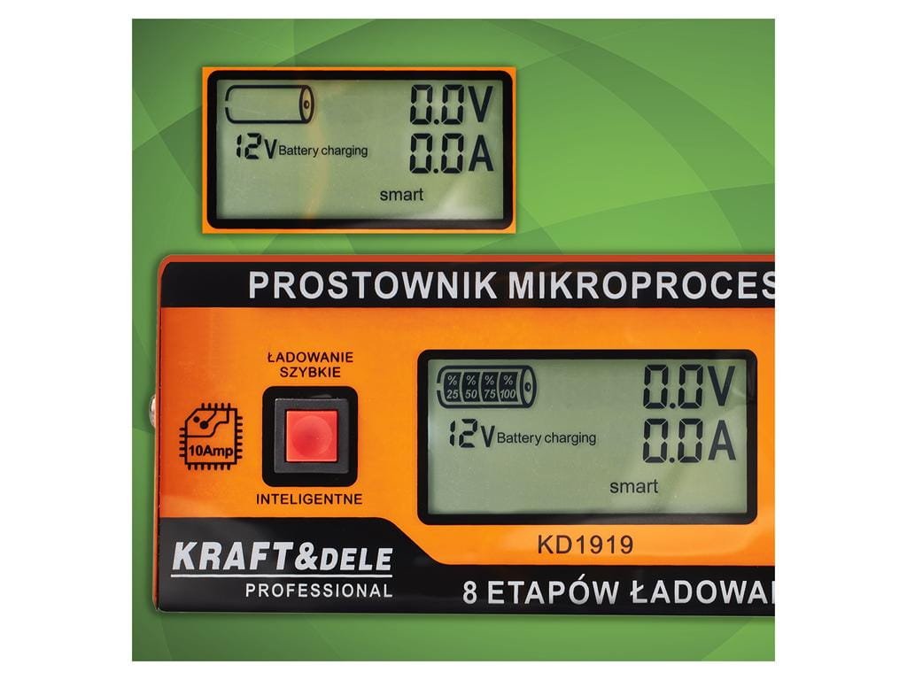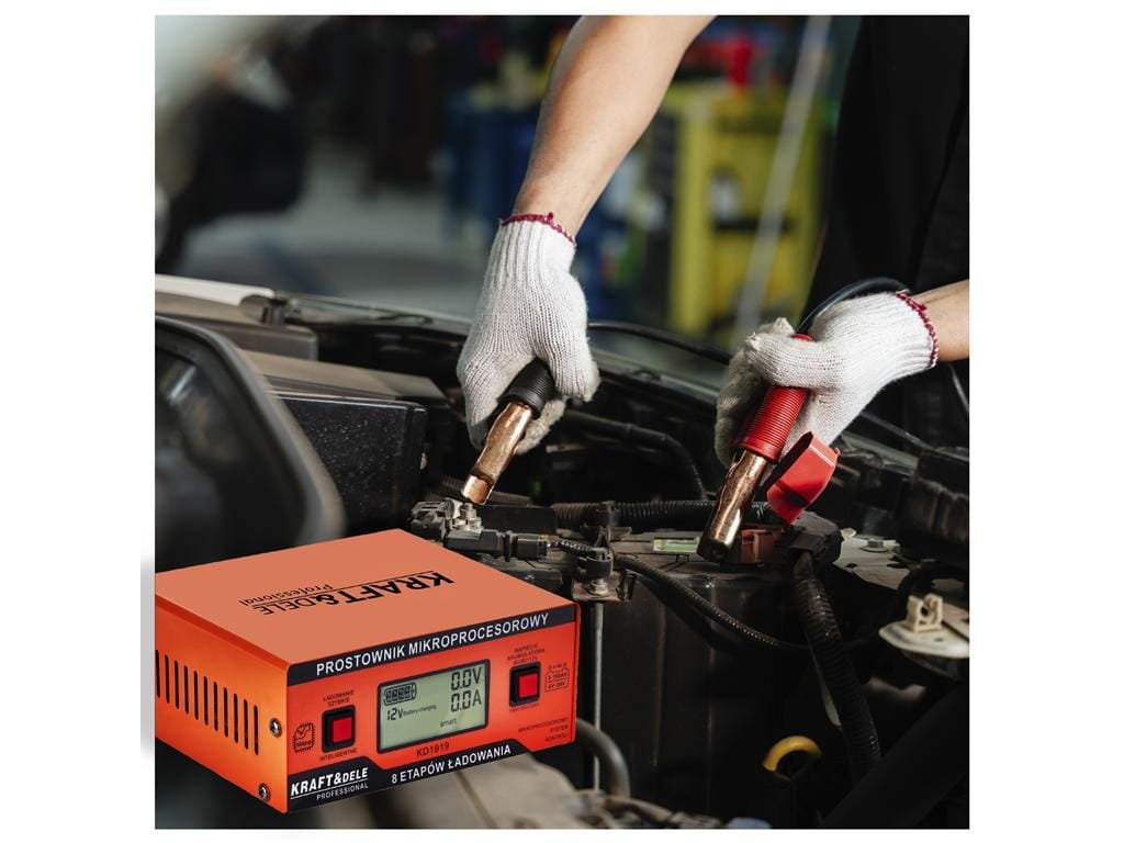 Mikroprocesorový prostredník KD1919 od české firmy Kraft&Dele je spoľahlivé zariadenie na nabíjanie všetkých typov olovených akumulátorov (WET/MF/CA/EFB/GEL/AGM). Čas nabíjania akumulátora závisí od jeho označenej kapacity a stupňa vybitia.
