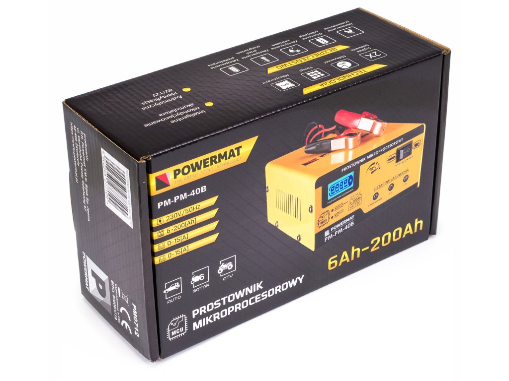 Usmerňovač PM-PM-40B značky Powermat je prvou nabíjačkou akumulátorov na trhu s mikroprocesorovým systémom riadenia v technológii PWM, ktorá inteligentne a presne nastavuje parametre pre nabíjanie akumulátorov 6V a 12V a dokáže oživiť váš vybité a zanedbané akumulátor.