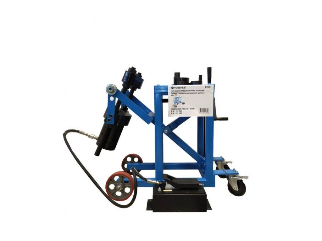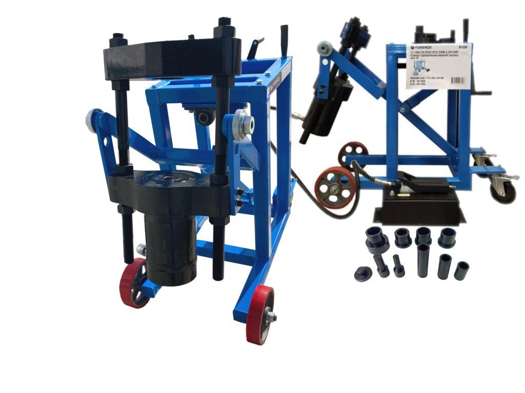 Profesionálny hydraulický lis na vytláčanie a zatlačovanie čapov bez nutnosti demontáže ramena. Nenahraditeľný pri opravách nákladných vozidiel, poľnohospodárskych strojov a pri ďalších dielenských prácach.