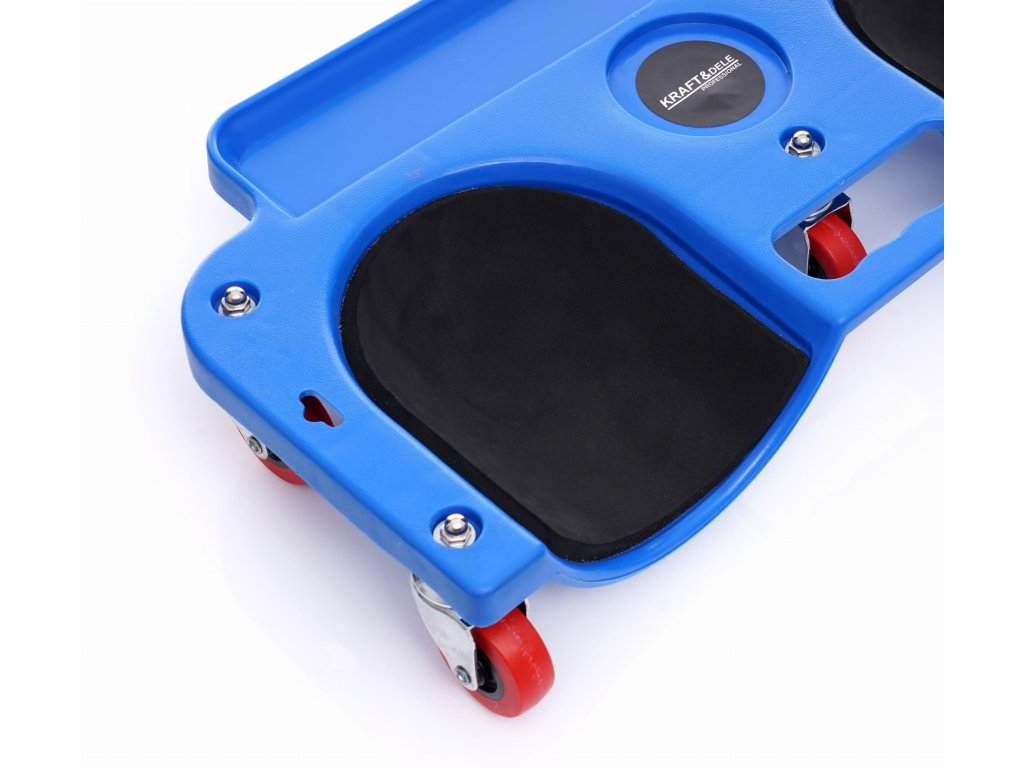 Podložka je vybavená 5 otočnými kolieskami, ktoré uľahčujú pohyb a manévrovanie. Opierka na kolená je vyrobená z mäkkej peny pre väčšie pohodlie používateľa. Prídavná malá priehradka na náradie zabezpečuje, že používateľ má všetko potrebné po ruke.