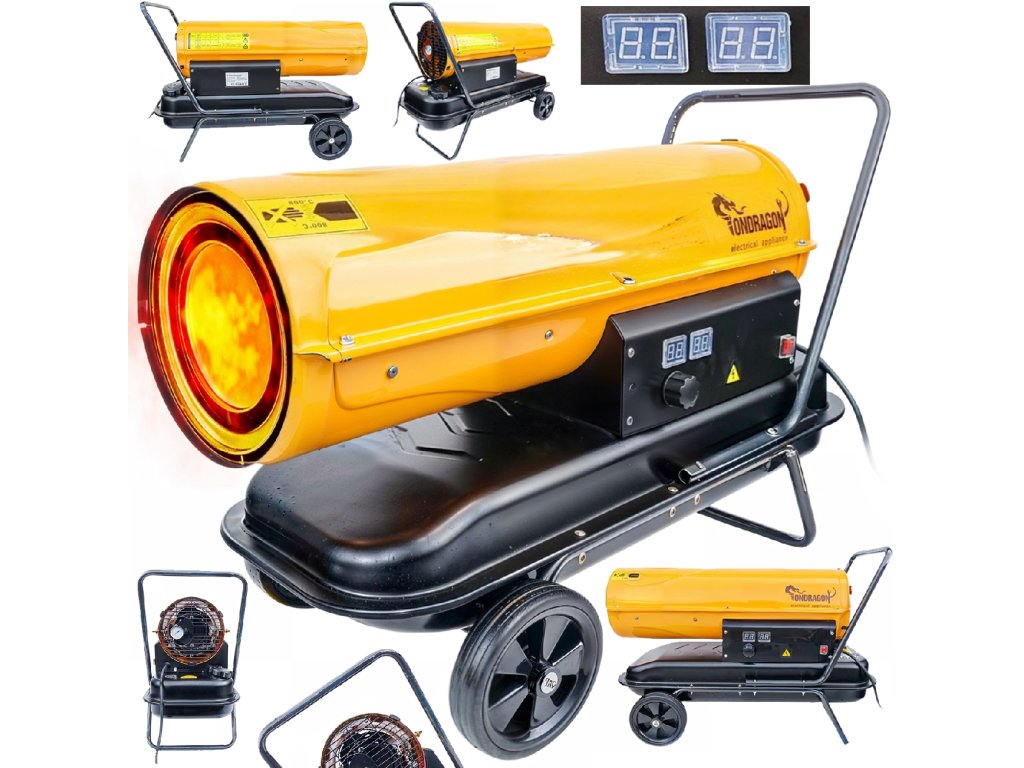 Výkonný naftový ohrievač s výkonom 40 kW je navrhnutý pre rýchle a účinné vykurovanie veľkých priestorov, ako sú dielne, haly alebo sklady. Vďaka digitálnemu termostatu s plynulou reguláciou teploty a funkciou automatického zapínania a vypínania ponúka pohodlné ovládanie a optimalizovanú spotrebu paliva. Dva LCD displeje umožňujú jednoduché nastavenie a sledovanie aktuálnej aj požadovanej teploty.