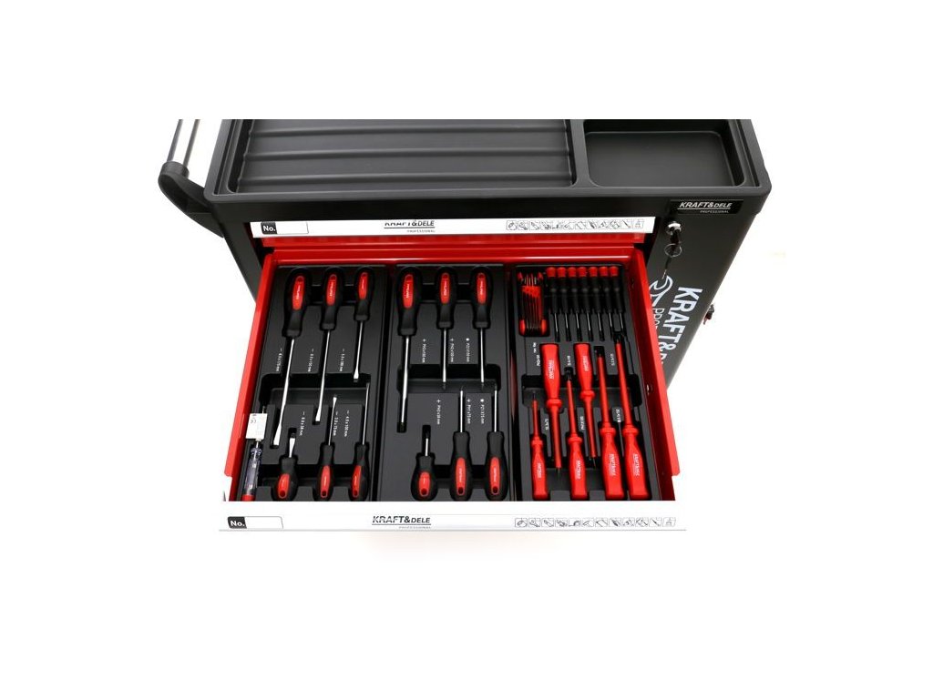 Skrinka na náradie 263 dielov KD362 značky Kraft&Dele je nenahraditeľný produkt v každej autoservise aj v garáži.