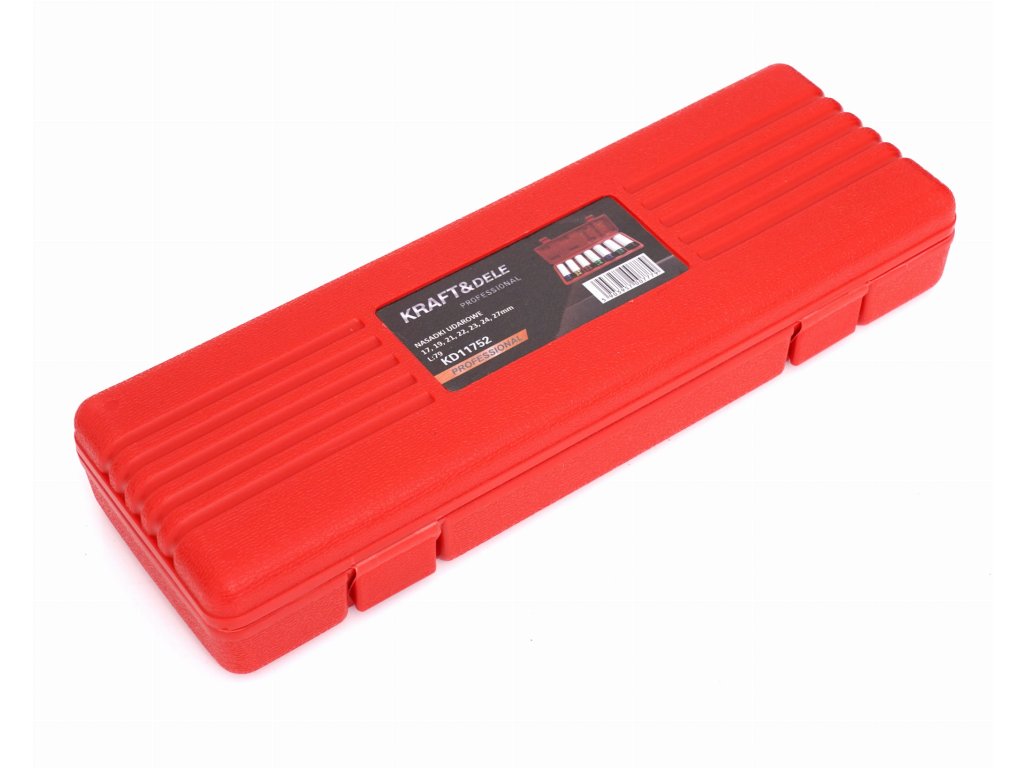 Profesionálna sada nástrčných rázových hlavíc, model KD11752, je určená na použitie v elektrických a akumulátorových náradiach. Odporúča sa pre profesionálne servisné strediská pre pneumatiky a automobily. Vyrobené zo špeciálnej chromovo-molibdénovej ocele, ktorá má dvojnásobnú ťahovú pevnosť v porovnaní s bežnou uhlíkovou oceľou a trojnásobne vyššiu medzu klzu.