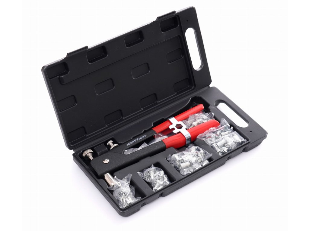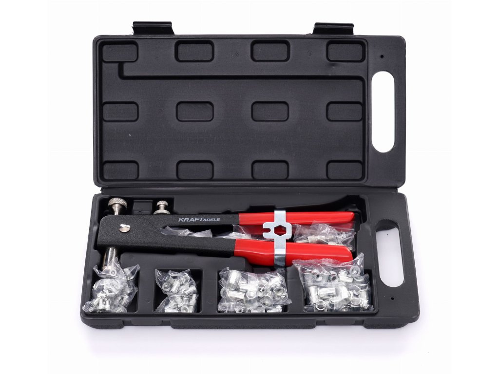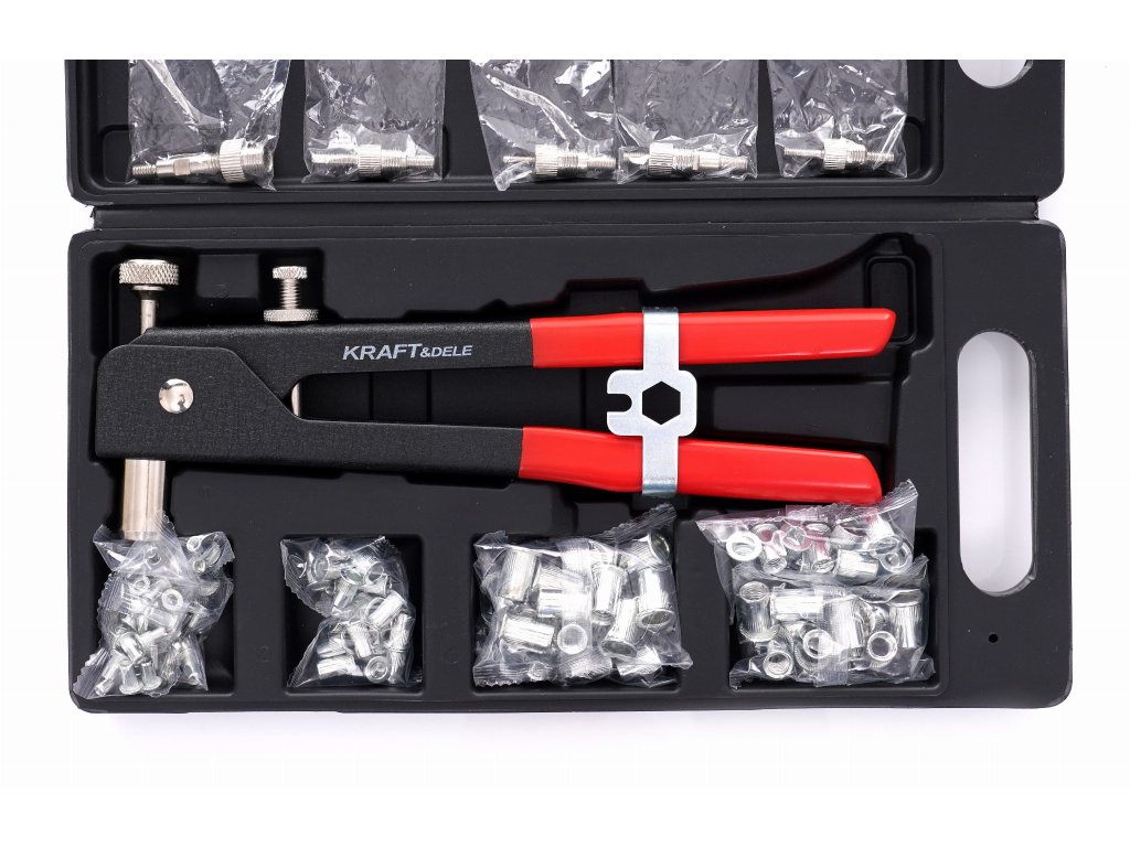 Profesionálne nýtovacie kliešte, model KD10555, sú vyrobené z materiálov najvyššej kvality, vrátane ocele a hliníka. Tento nástroj je určený na osadzovanie závitových nýtov do tenkých materiálov, ako sú plech, plast a sklenené vlákna. Je ideálny pre všetky typy plechov, rúr a ďalšej výroby, a často sa používa pri montáži automobilov, výťahov, prepínačov, nástrojov, nábytku, dekorácií a elektrických strojov, ako aj pri ľahkých priemyselných výrobkoch.