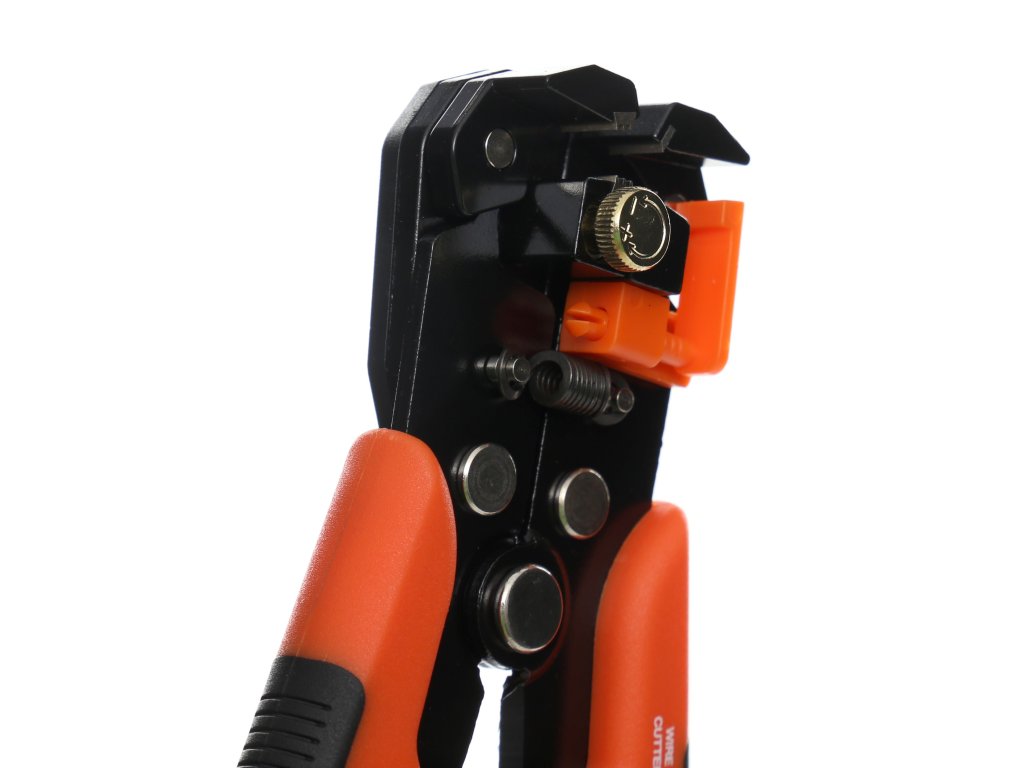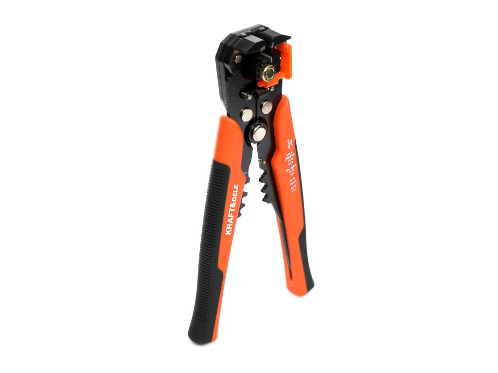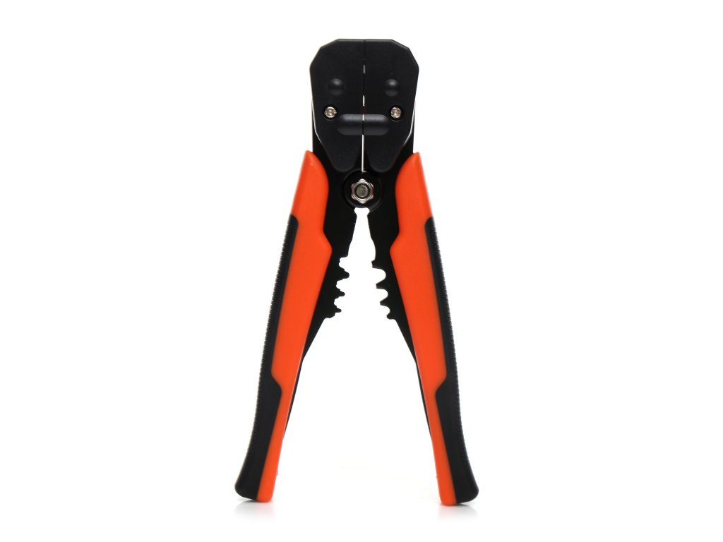 Multifunkčný, spevnený prístroj s tvrdenými čepeľami, protišmykovou gumou a automatickým prispôsobením prierezu vodiča. Navyše vybavený rezačkou, lisom na koncovky, nastavením dĺžky odizolovania a automatickým návratom do východzej polohy. Dĺžka nástroja je 205 mm.