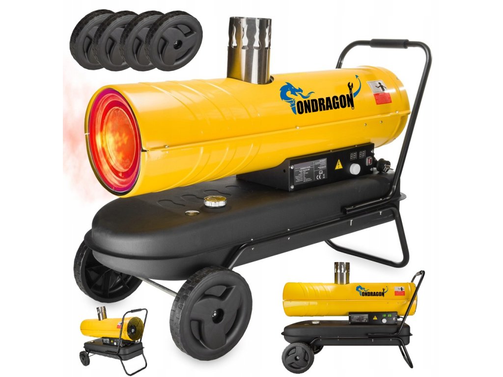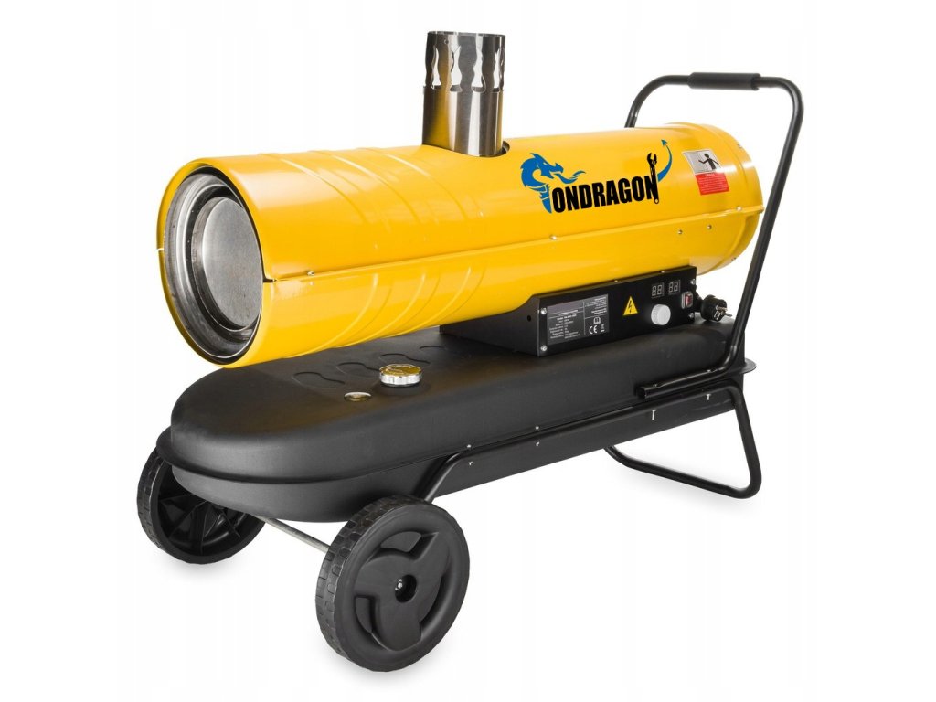 Výkonné olejové topidlo Ondragon 30 kW s odtahem spalin je ideální volbou pro vytápění velkých prostor, jako jsou dílny, sklady, haly, zemědělské objekty nebo staveniště. Díky vestavěnému komínu odvádí spaliny mimo místnost, takže z topidla proudí pouze čistý horký vzduch. Topidlo je vybaveno LCD displejem, digitálním termostatem, automatickým zapínáním/vypínáním a bezpečnostní ochranou proti přehřátí. Robustní konstrukce, velká nádrž a snadná manipulace jej předurčují pro profesionální nasazení.