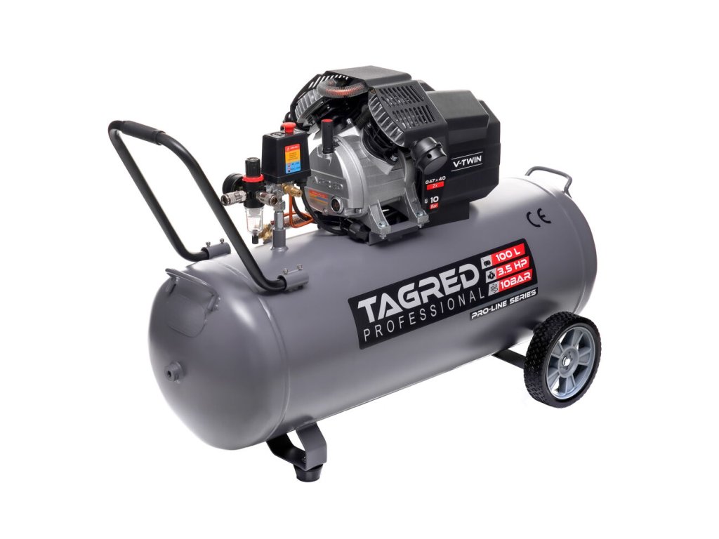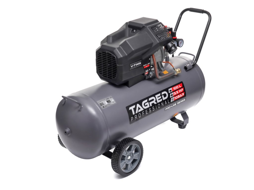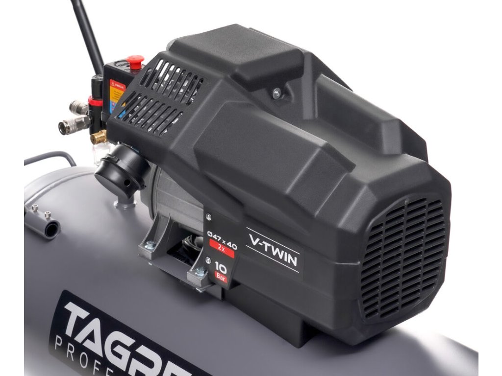 Výkonný olejový kompresor TAGRED Pro-Line je robustný a spoľahlivý prístroj určený pre intenzívnu prácu v dielni, garáži aj pri domácom použití. Vďaka dvojpiestovej konštrukcii, vysokému výkonu a maximálnemu tlaku 10 bar poskytuje stabilný prísun stlačeného vzduchu pre široké spektrum pneumatického náradia. Odolná konštrukcia s liatinovými valcami a účinným systémom chladenia zaisťuje dlhú životnosť aj pri dlhodobom zaťažení.
