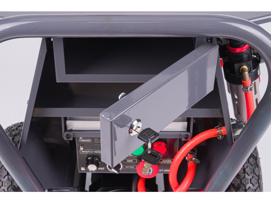Agregát vybavený skrinkou pre bezpečné uloženie predmetov s možnosťou uzamknutia na kľúč.