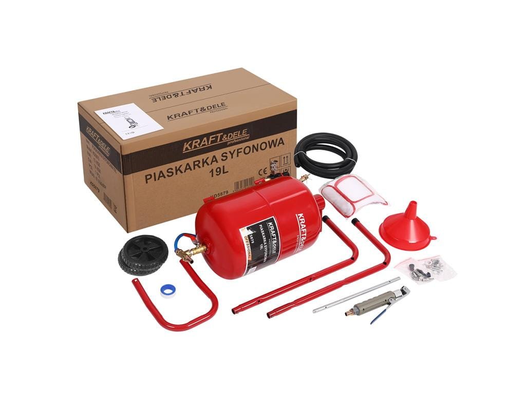 Pieskovačka sifónová KD5879 s objemom 19 litrov je vyrobená z odolných materiálov, odolných voči pôsobeniu brusiva aj pracovným podmienkam v dielni. Ergonomická konštrukcia umožňuje pohodlné použitie aj pri dlhšej práci.