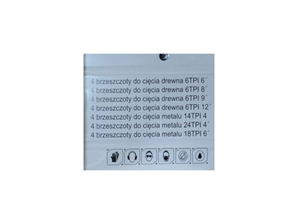 Obsah balenia: Listy na kov • Dĺžka 6" 18 TPI - 4 ks • Dĺžka 4" 24 TPI - 4 ks • Dĺžka 4" 14 TPI - 4 ks Listy na drevo: • Dĺžka 12" 6 TPI - 4 ks • Dĺžka 9" 6 TPI - 4 ks • Dĺžka 8" 7 TPI - 4 ks • Dĺžka 6" 7 TPI - 4 ks Parameter TPI udáva počet zubov na palec (angl. teeth per inch) |