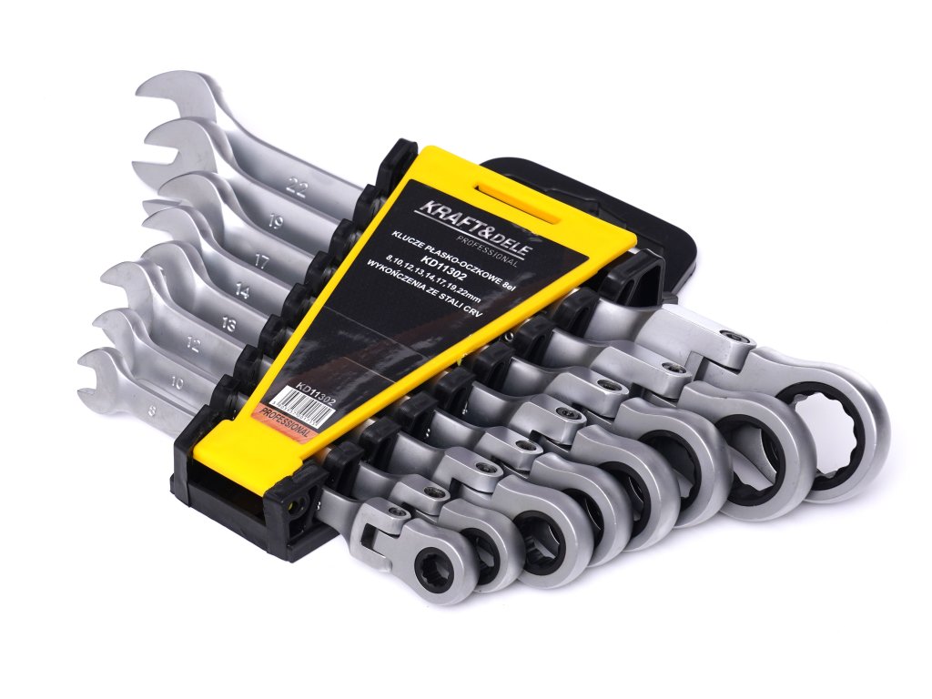 Sada plochých a očkových kľúčov 8 ks KD11302 značky Kraft&Dele je vyrobená z vysokokvalitnej chrómovanej uhlíkovej ocele.