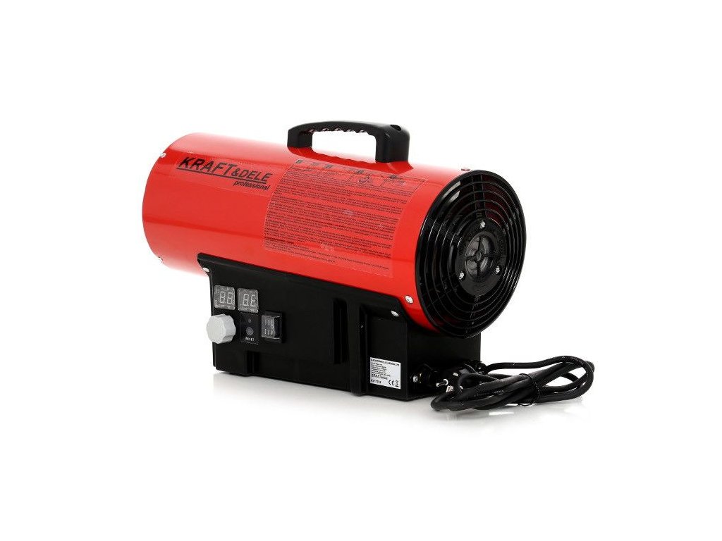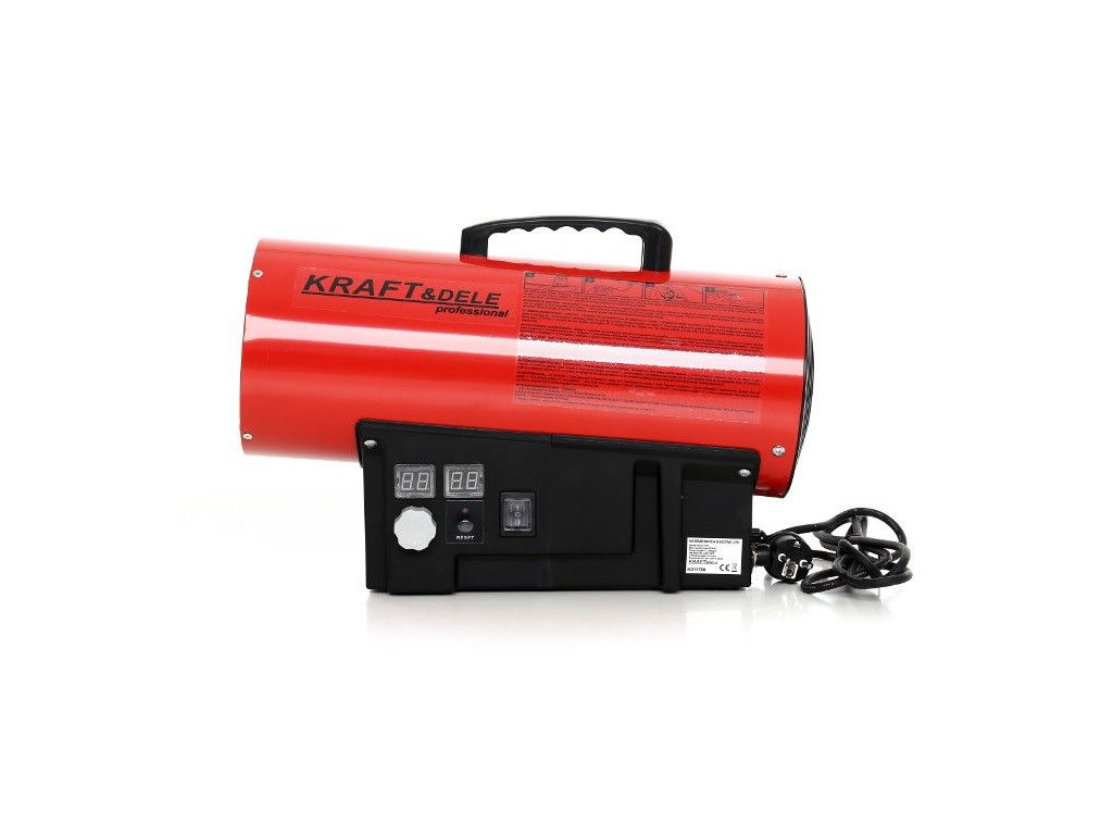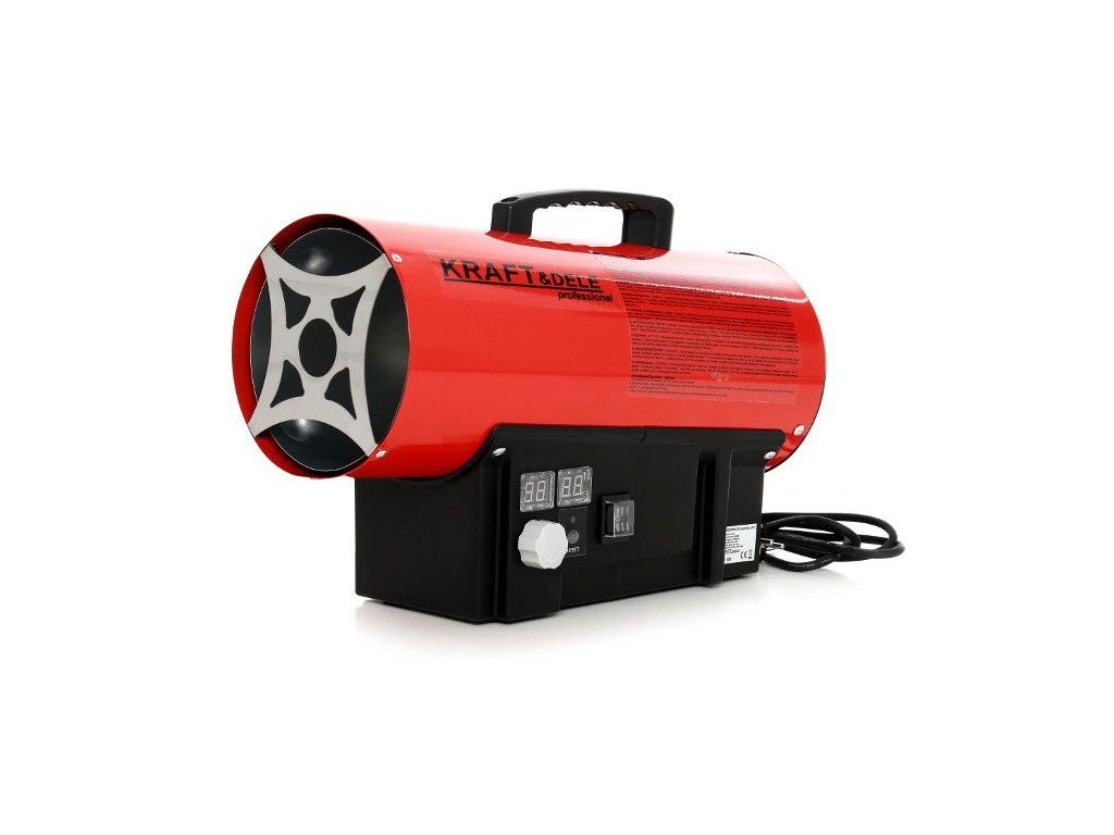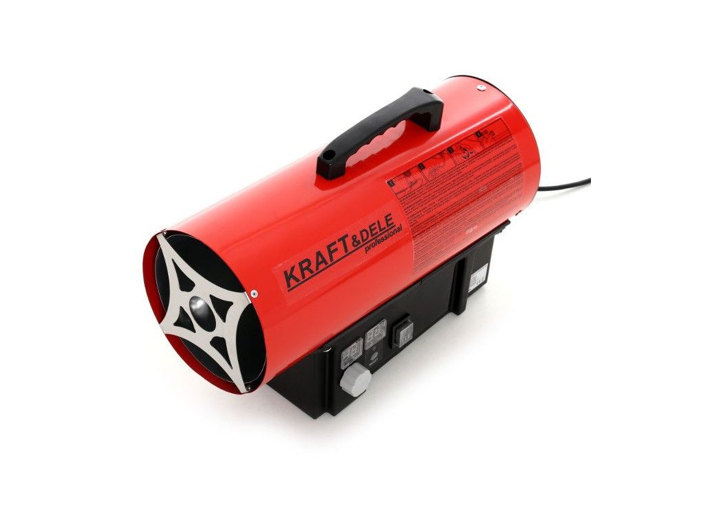 Teplovzdušný ohrievač značky Kraft&Dele model KD11702 s výkonom 60 KW na propan-butan (LPG). Teplovzdušný ohrievač je vybavený termostatom s reguláciou teploty a digitálnym displejom, ktorý umožňuje jednoducho nastaviť požadovanú teplotu. Teplovzdušný ohrievač pracuje automaticky podľa nastavenia teploty.