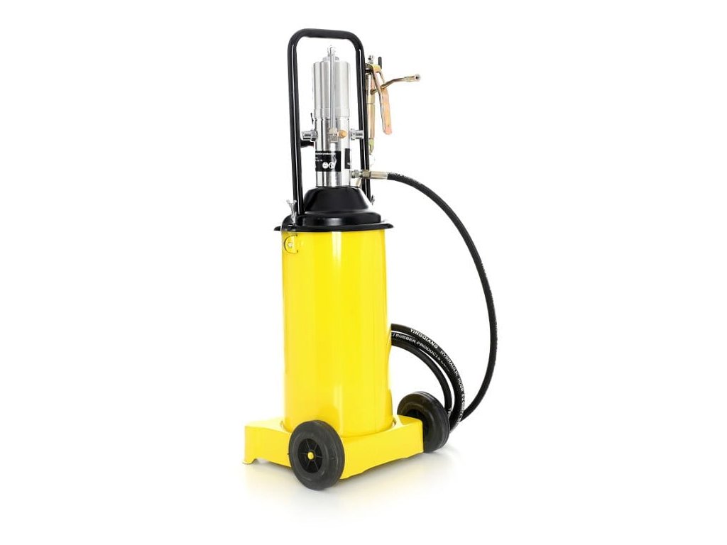 Profesionálna mazacia pištoľ umožňuje bezproblémové mazanie súčiastok jednou osobou. Veľká kapacita 15 l zaručuje nepretržitú prevádzku bez nutnosti zdĺhavého dopĺňania nádrže.